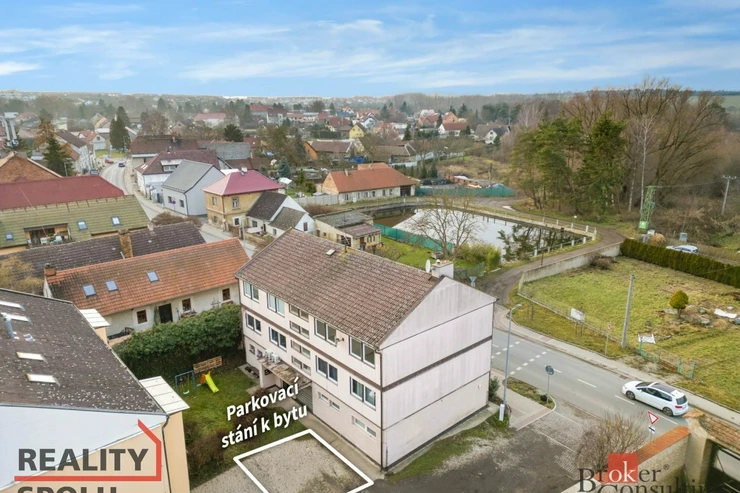 K bytu náleží balkon, sklepní jednotka a vlastní venkovní parkovací stání.