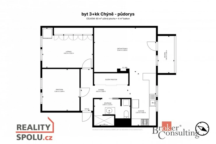 Prodej prostorného bytu 3+kk, 79 m², ul. Tichá, Chýně