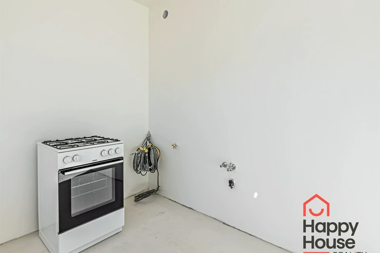 The apartment consists of a spacious living room with a space prepared for a kitchen unit, plus 2 separate rooms, a bathroom, and a separate toilet. The property has been renovated — new plastic windows, built bathroom with a shower, and a toilet. All walls are newly built with electrical and water installations. The entire apartment has an anhydrite floors as a preparation for any type of top floor covering. In the kitchen area, preparations are made for a large corner kitchen unit. Openings for interior doors are ready for frames and doors to be chosen by the future owner. The apartment features central district heating, with electricity and gas installed. The whole building is insulated and has a new facade, and is very well-maintained.