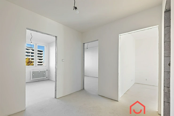 We are exclusively offering for sale/transfer a beautiful bright unfurnished two-bedroom apartment with 60 sqm of living floor area, owned cooperatively, located on the 7th floor of a panel building with an elevator in the demanded area of Prague 4, Lhotka, on Jílovská street. The apartment has undergone a recent costly renovation, it includes a large balcony (7.2 sqm) and a storage room (1.1 sqm) located on the same floor opposite the entrance to the apartment. This sunny flat near the center of Prague boasts an attractive panoramic view, partially overlooking greenery and nearby Hodkovičky forest park.