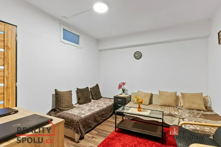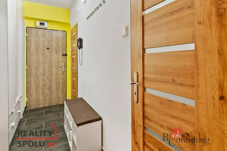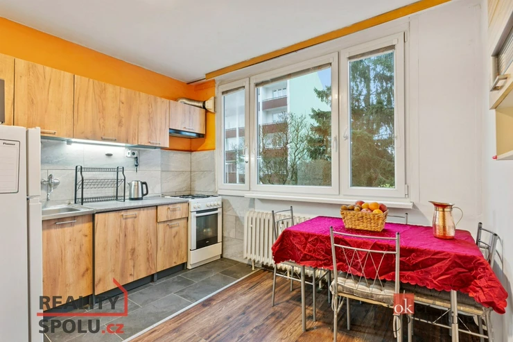 Byt se skládá ze vstupní chodby, ze které je přístup do jednotlivých místností. K dispozici je kuchyň, prostorný obývací pokoj, samostatná ložnice, koupelna a oddělené WC. Interiér je laděn do příjemného, ale moderního, vkusného stylu s důrazem na dřevěné prvky, které bytu dodávají útulnou atmosféru. Prostor působí čistě a udržovaně. Součástí je také sklepní kóje o velikosti 5m2.