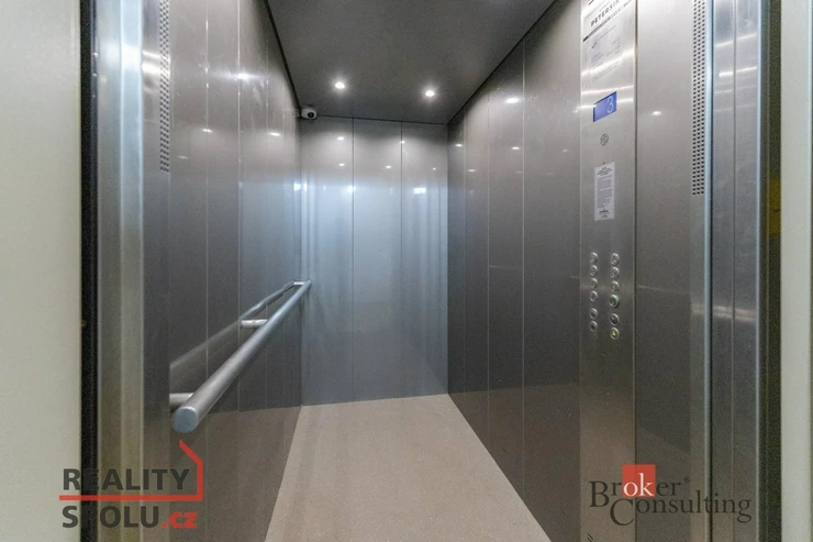 Sklepní kóje je netradičně umístěna v 7. NP, v přízemí je možné využít společnou kolárnu a kočárkárnu.