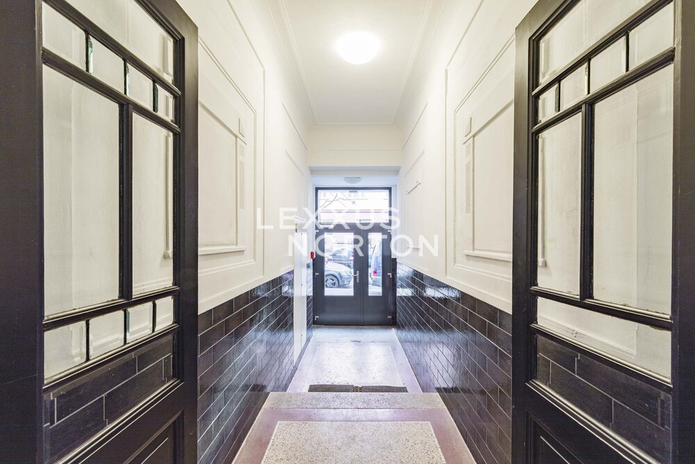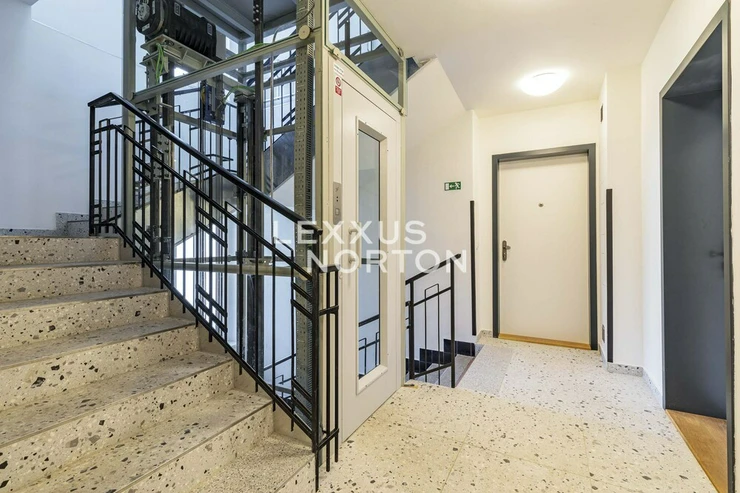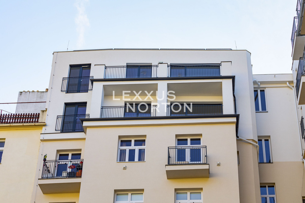 The new modern 2-bedrooms apartment with two terraces is part of the revitalization project of a corner apartment building from the early 20th century with the construction of two new upper floors. The house is set in a vibrant original residential area with all infrastructure and at the same time in direct proximity to Židovské pece, Vítkov and Parukářka parks.The apartment unit consists of a living room with a kitchen and access to a south-facing terrace and two bedrooms. One of the bedrooms has its own access to the second, west-facing terrace with a beautiful view of Prague. There is bathroom with a shower, a separate toilet and an entrance hall.The apartment is finished to a high standard. Three-layer oak floors, large windows with anthracite plastic-aluminum frames, outdoor blinds, large-format La Futura tiles in the bathrooms and premium brands of Ideal Standard, Kaldewei and Hüppe sanitary ware. The apartment is heated by a gas condensing boiler with underfloor heating. Air conditioning is available.The house has a new elegant facade that unifies the space of the original building and the new building on the upper floors. The common areas are undergoing renovation. The elevator has an exit directly on the individual floors. It is possible to purchase a cellar with the apartment.The location of upper Žižkov offers complete comfort of urban living in a stabilized residential area, in direct proximity to greenery with the possibility of relaxation and at the same time with quick access to the city center. Quick connections to the center are provided by numerous tram lines or by bus with connections to metro lines A, B and C.