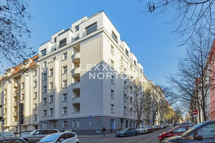The new modern 2-bedroom apartment with terrace is part of the revitalization project of a corner apartment building from the beginning of the 20th century with the construction of two new upperfloors. The house is set in a vibrant original residential area with all the infrastructure and at the same time in the direct vicinity of the Zidovske pece, Vitkov and Parukarka parks.The apartment unit consists of a very spacious, large-format windows-lit living room with a kitchenette, from which there is access to a terrace facing a quiet courtyard, and two bedrooms. There are two bathrooms, first with a bathtub and second with shower and an entrance hall. The apartment can also be solved as a 3-bedroom layout with a simple intervention.The apartment is finished to a high standard. Three-layer oak floors, large windows with anthraciteplastic-aluminum frames, outdoor blinds, large-format La Futura tiles in the bathrooms and premiumbrands of Ideal Standard, Kaldewei and Hüppe sanitary ware. The apartment is heated by a gascondensing boiler with underfloor heating. Air conditioning is available.The house has a new elegant facade that unifies the space of the original building and the new building on the upper floors. The common areas are undergoing renovation. The elevator has an exit directly on the individual floors.The location of upper Zizkov offers complete comfort of urban living in a stabilized residential area, in direct proximity to greenery with the possibility of relaxation and at the same time with quick access to the city center. Fast connections to the center are provided by numerous tram lines or a bus with connections to metro lines A, B and C.