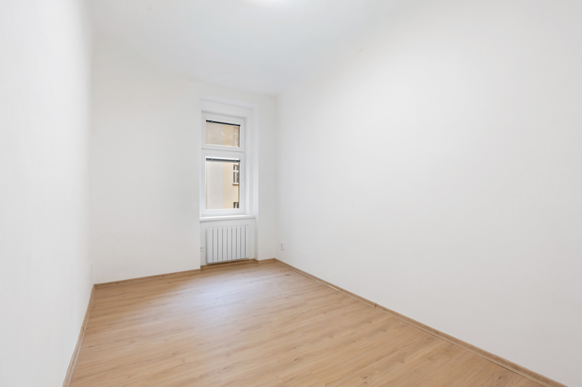 Dispozice bytu tvoří předsíň, samostatný kuchyňský kout, koupelna s WC, ložnice orientovaná do vnitrobloku a obývací pokoj s okny do ulice. Dům má udržované společné prostory a menší vnitřní dvůr, který je k dispozici pro obyvatele domu.