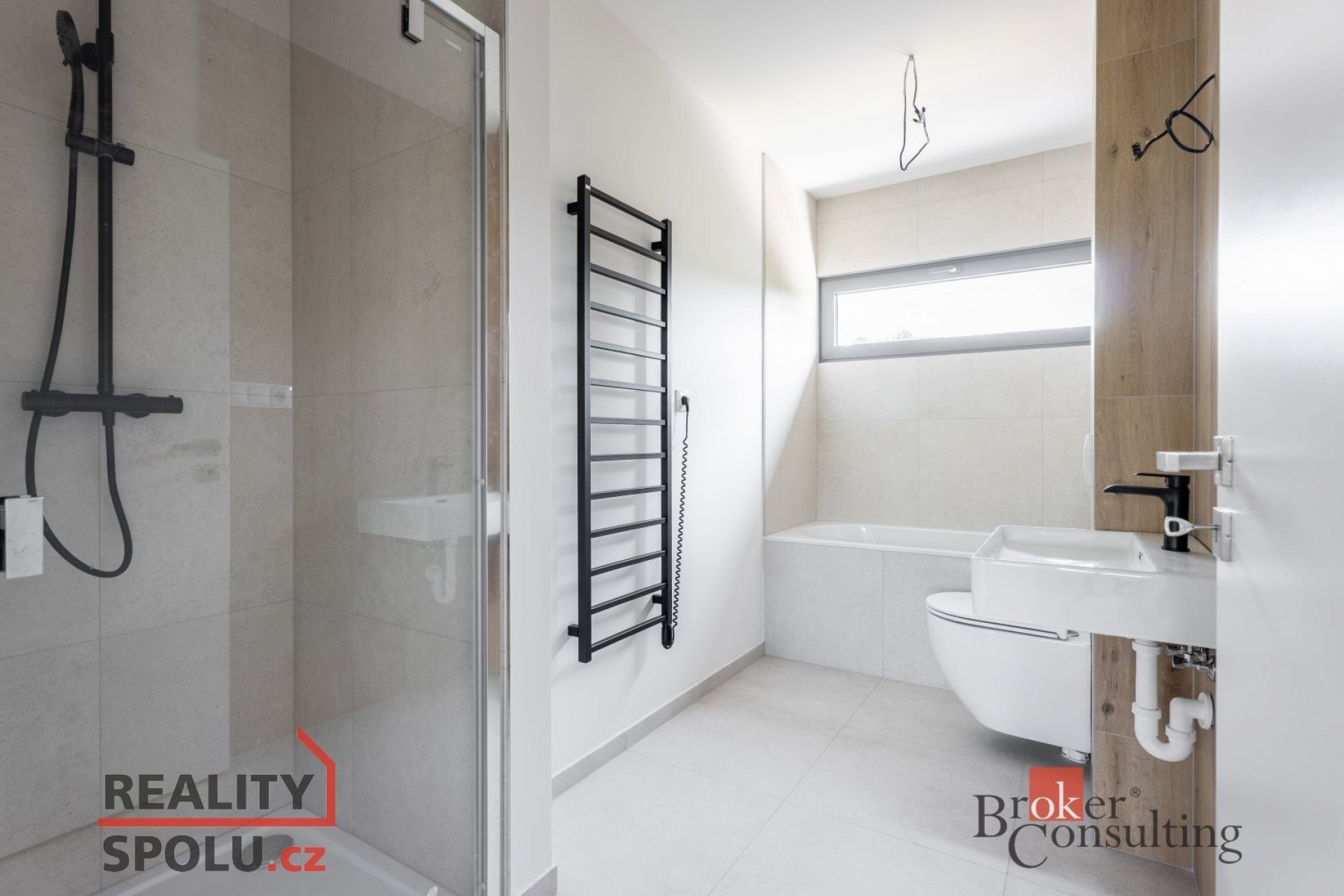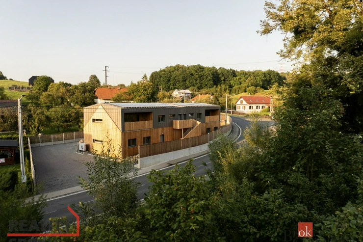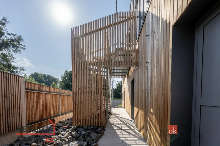Kvalitu bydlení podtrhují hliníková okna s izolačními trojskly, venkovní žaluzie s možností ovládání jak dálkovým ovladačem, tak mobilním telefonem, a prémiová střešní krytina se zárukou 40 let. Tyto prvky zajišťují dlouhodobou životnost použitých materiálů, vysoký uživatelský komfort a zároveň velmi nízké provozní náklady. Díky tomu byt splňuje energetickou třídu A – mimořádně úsporná, což se dlouhodobě pozitivně odráží v celkových nákladech na bydlení.