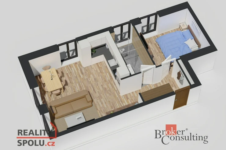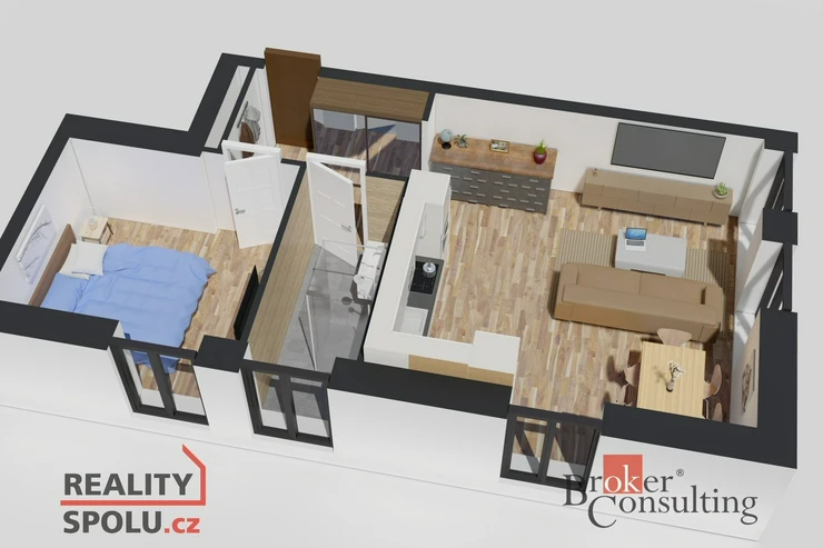Nabízíme prodej bytu č.6 a dispozici 2+kk o výměře 47,53 m² ve 2. nadzemním podlaží Rezidence Důl Michal.
