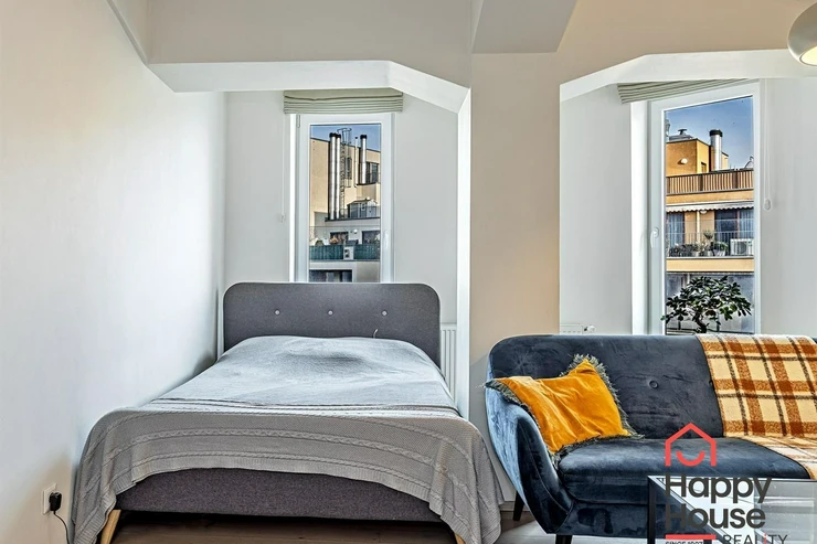 We are offering for sale a spacious, bright studio apartment of 38 sqm, located on the 4th floor of a new building from 2018, with an elevator, in Prague 7 - Holešovice. Just a 12-minute walk to the metro C - Nádraží Holešovice.