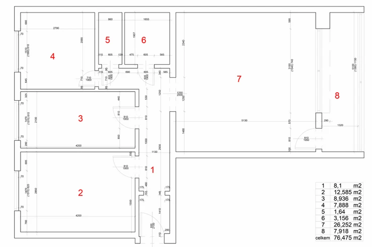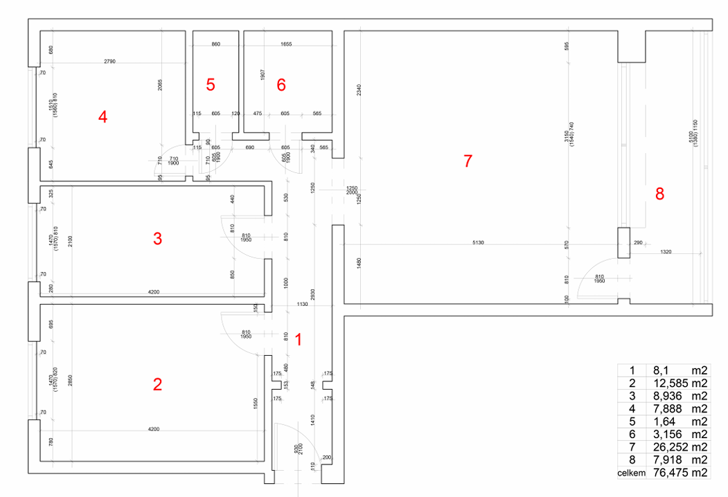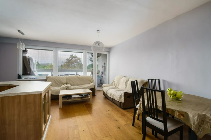 The apartment consists of a living room with a kitchen and access to a loggia, a bedroom, a children and #39;s room, a smaller bedroom for guests (can be used as an office or as desired), a bathroom with a bathtub, a separate toilet and a corridor from which you can access all of the above. premises.