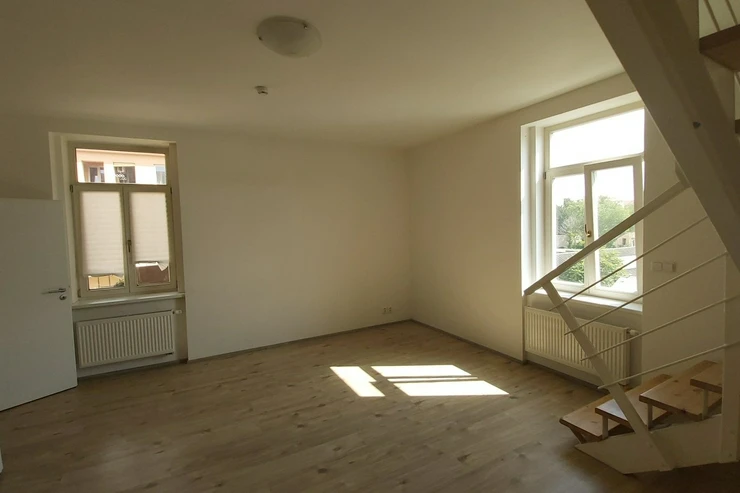 We are pleased to offer for sale a beautiful and bright duplex apartment (3+kk) with a total area of 78.2 m², featuring a terrace, located on the 4th floor of a renovated residential building on Stará Street 19, right in the heart of Brno.