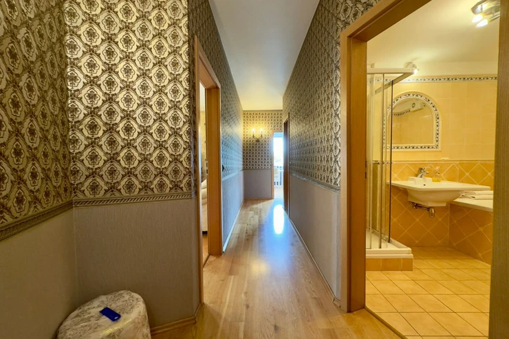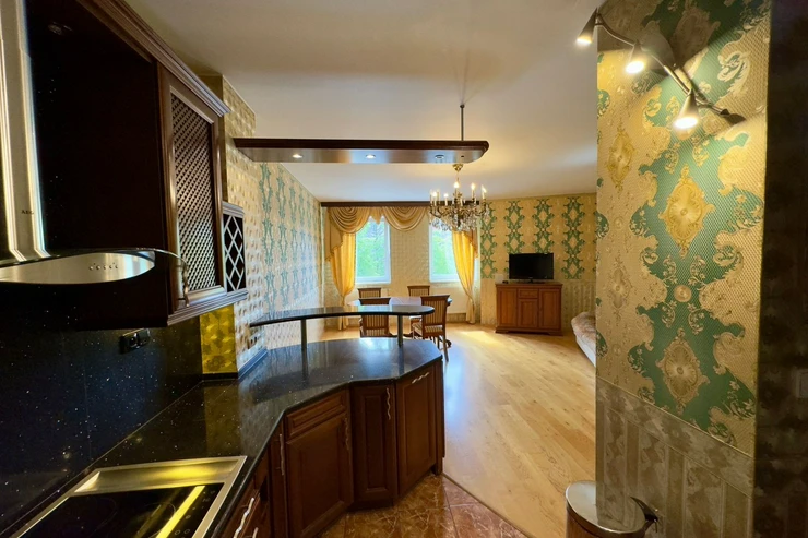 The apartment has 2 bedrooms, a living room with a fully equipped kitchen, a bathroom with a bath and shower, a separate toilet, a technical room and a corridor that connects all rooms.