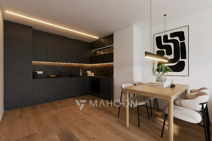 The apartment is finished to a high standard (floors, doors, bathroom) and ready for the installation of a kitchen unit of your choice—our interior design studio will be happy to assist you with the design.