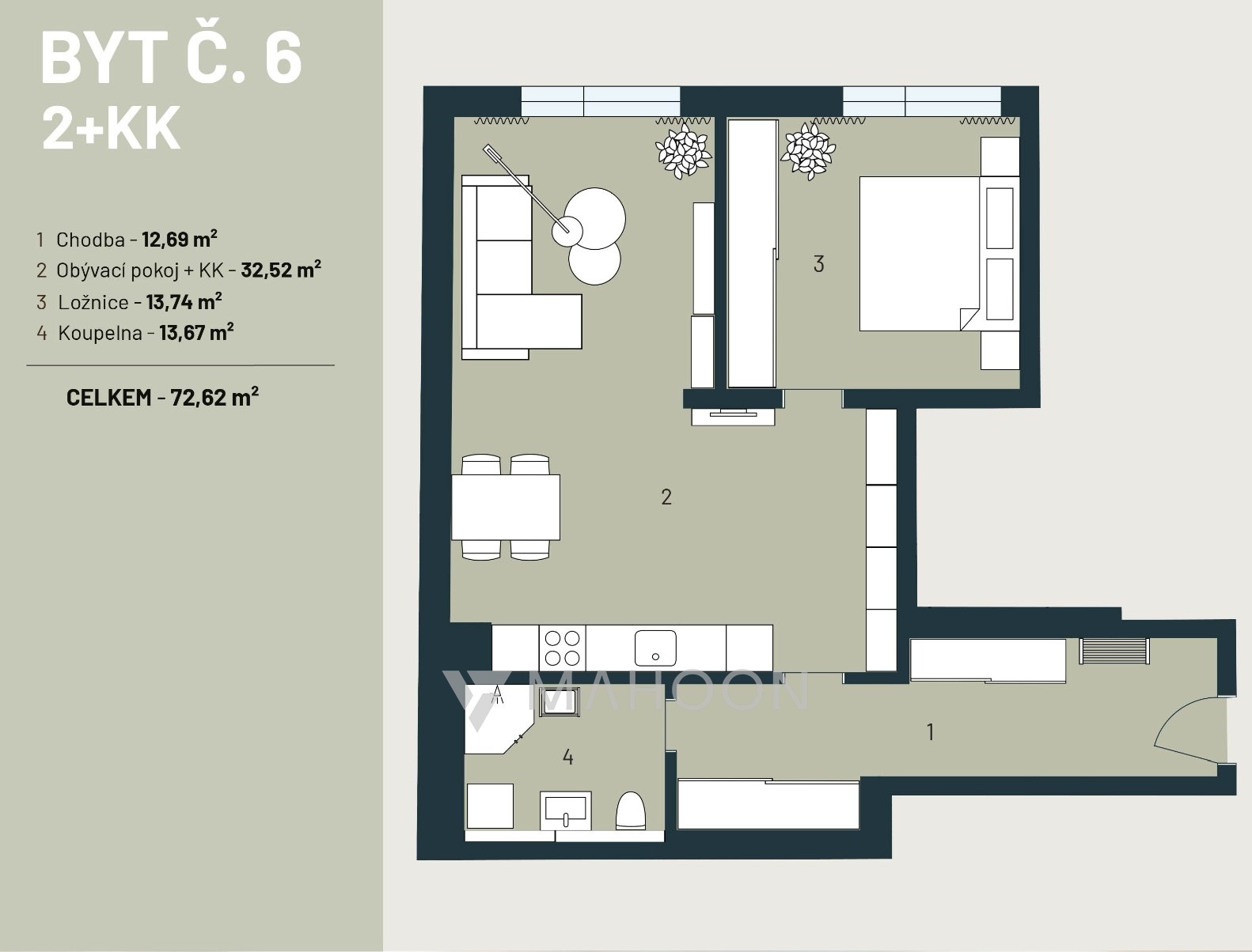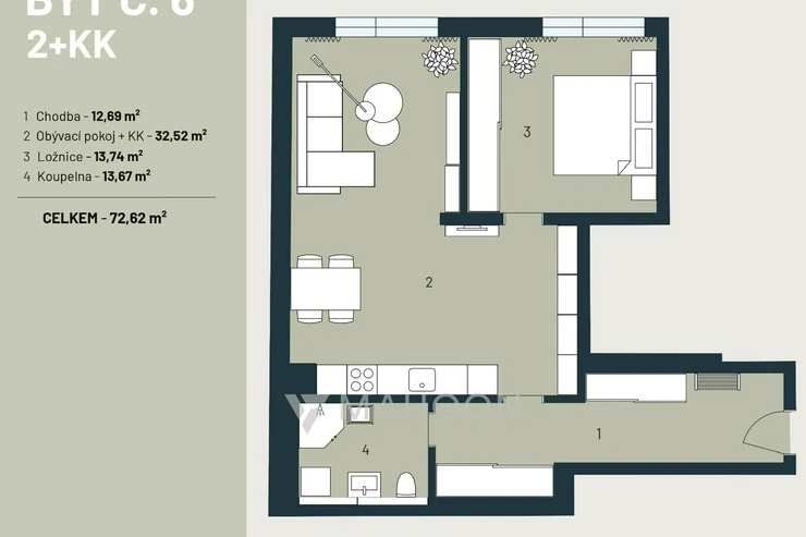 A 2-bedroom apartment (2+kk), 67 m², located on the 3rd floor of the apartment building.