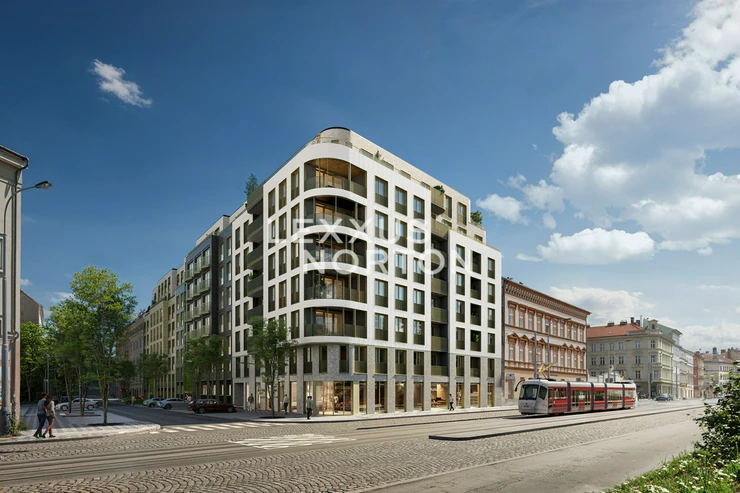 This cozy studio apartment is located on the 5th floor and has a total area of 36.6 sqm.The layout of the apartment is based on a spacious living area with a kitchenette, which provides maximum flexibility of use. The apartment also includes a bathroom with a toilet, a hallway with storage space, and a balcony, which serves as a pleasant addition to the living space. The apartment is a great opportunity not only for an individual or couple to live in, but also as an investment property suitable for long-term rental.The Na Plzence Residence is a modern and ecological residential project in the dynamically developing Smichov district. It offers 160 apartments with layouts from 1 to 4 bedrooms, high–standard fittings, and class-A energy efficiency (EPC). The project uses geothermal boreholes, heat pumps, and photovoltaic panels, which reduce operating costs and provide efficient heating and cooling. The residence includes also a private courtyard with green space.Housing in the Na Plzence Residence combines modern style, energy efficiency and excellent accessibility in the dynamically developing district of Smichov.Construction is already underway, with completion scheduled for the year 2027.Large-format windows with wooden frames and triple glazing bring in plenty of daylight while providing excellent thermal insulation.The apartment has wooden floors and underfloor heating, which provide a comfortable temperature in any season and can replace air conditioning.Smichov is one of Prague's fastest-developing districts and will undergo a significant transformation in the coming years. As part of the revitalisation of the area around the Smichov railway station, a new transport terminal will be built to connect the metro, train station, tram and bus lines with a large P+R car park. At the same time, the railway station is being rebuilt, and a new urban district with offices, shops and public spaces will be created in the area.The Residence is within walking distance of the Smichov railway station, line B metro and tram lines, providing excellent transport accessibility. The proximity to the Vltava River and the Smichov Embankment gives the location an unmistakable atmosphere that combines an urban lifestyle with a pleasant environment for everyday life. There is a wide range of restaurants, cafes, shops, pharmacies and medical facilities in the area.