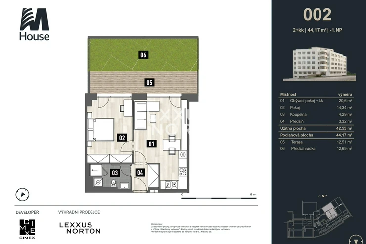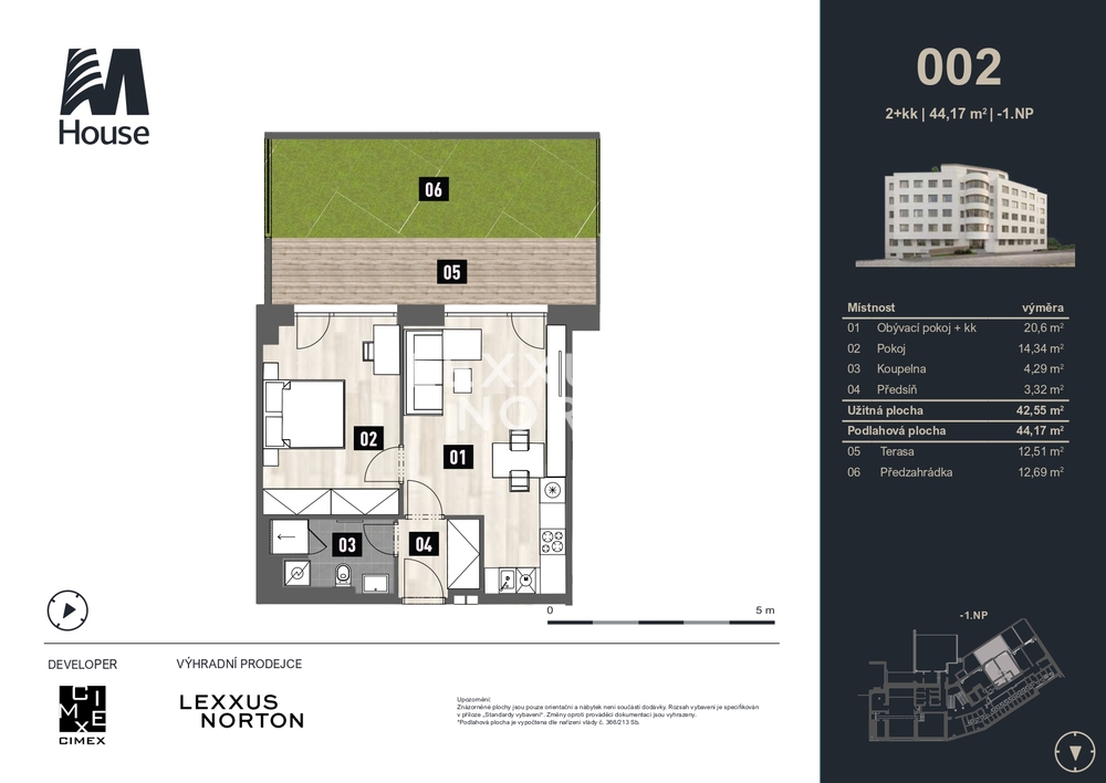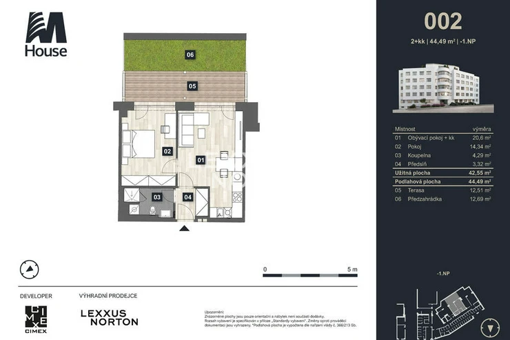 An exclusive one-bedroom accommodation unit for sale in the newly developed residential project M-House, which is synonymous with comfort, functionality, and modern living near Kubanske Square in Prague's Vrsovice district.The unit is designed with an emphasis on practicality and full utilization. It is located on the first basement floor facing the calm courtyard. From the entrance hall, you can smoothly transition to the main living area, which connects the kitchenette, living room, and bedroom area. There is also a modern bathroom with a shower and toilet. High-quality equipment and modern technology are a matter of course, ensuring maximum comfort and functionality. This unit also has a terrace and front garden.A parking space and basement storage unit can be purchased with the unit.M-house is located on the border of Vrsovice and Vinohrady, just a short walk from Kubanske namesti. This strategic location offers the perfect balance between peaceful living and rich urban amenities. Thanks to its proximity to major transport arteries and public transport stops, you can easily reach the center of Prague and other parts of the city. The surrounding area offers a wide range of shops, supermarkets, kindergartens, elementary schools, and medical facilities. Foodies will find a variety of cafes, restaurants, and bistros here. Nature lovers will adore Ruth Bondy Park, ideal for relaxation, walks, or picnics, as well as the newly emerging Drazni Promenade Park, inspired by New York's world-famous High Line. Nearby sports and recreational facilities offer a wide range of activities for all age groups, including a swimming pool, outdoor sports grounds, an ice rink, and Fortuna Arena.