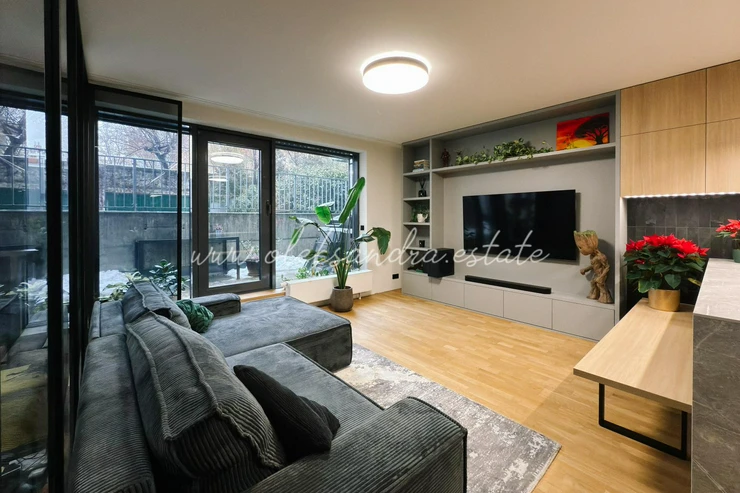 We offer for sale an exceptional 1-bedroom apartment (2+kk) with a total floor area of 54.5 m and a terrace of 15.5 m, located on the ground floor of an attractive residential building in the prestigious Karlín district. The apartment offers peace and privacy thanks to its orientation toward a green inner courtyard. It has undergone a complete and high-end renovation completed in December 2025, carried out with a strong emphasis on quality, detail, and long-term living comfort.