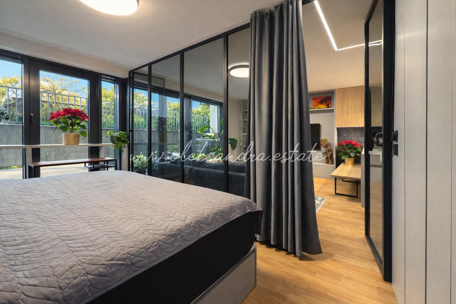 The apartment is equipped with a smart home system with full Philips Hue lighting, top-tier Bosch appliances, air conditioning with both cooling and heating functions, external electric blinds, and underfloor heating in the bathroom. Every detail has been thoughtfully designed and serves a clear purpose.