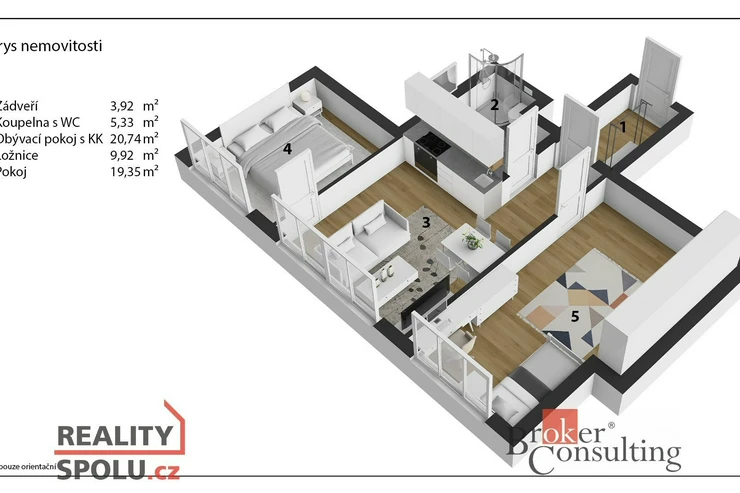 Byt s podlahovou plochou 62,04 m² je umístěn v přízemí cihlové novostavby s vlastním zadním vchodem, kde jsou jen dva byty se společnou předsíní, okna směřující do ulice. Kolaudace domu proběhla v roce 2025. Aktuálně je pronajímán, přičemž kompletní správu zajišťuje externí firma, která se stará o veškerou administrativu i provoz. Parkování je možné přímo před domem.