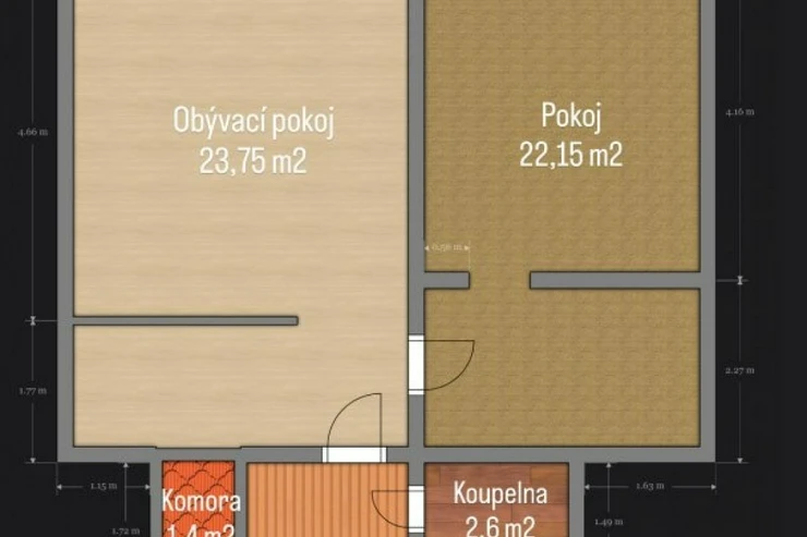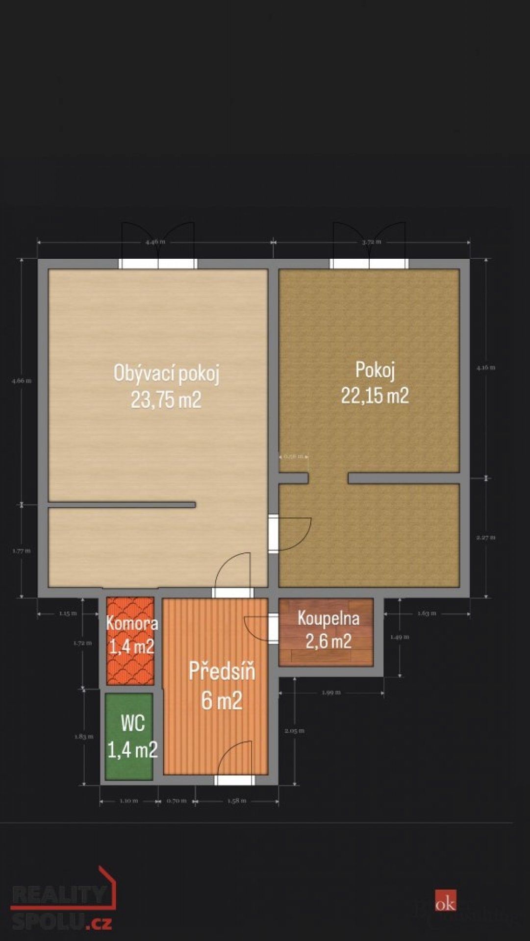 Byt je slunný, orientovaný na JZ, větratelný, s výhledem do zeleně, na říčku Rokytku. Díky vyšším stropům 3 m v pokojích působí větším dojmem.