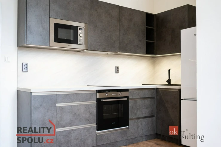 Novou kuchyňskou linku vybavenou kvalitními spotřebiči Concept (indukční varná deska, elektrická trouba, mikrovlnná trouba), digestoří Klarstein a spotřebiči Beko (lednice)