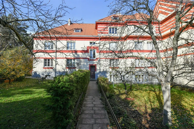 We are offering for sale an exceptional apartment with a current layout of 3+1, with the option to modify it to a 4+kk or 4+1 layout, boasting a total area of 115 m². The apartment is located on the first floor of a house with a garden, which is part of the historically valuable Cibulka villa colony in Prague's Košíře neighborhood. This unique residential complex of inter-war architecture was created between 1924–1926 as a thoughtfully planned urban concept emphasizing quality living, a serene garden environment, and a communal character of the locality.