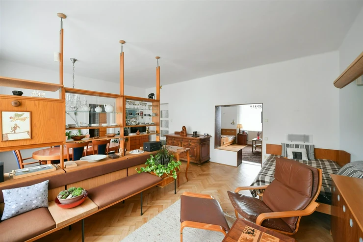 The apartment itself offers an authentic living atmosphere in a villa, combining space, light, and a sense of privacy in one of the most pleasant residential areas of Prague, right next to Cibulka Park.