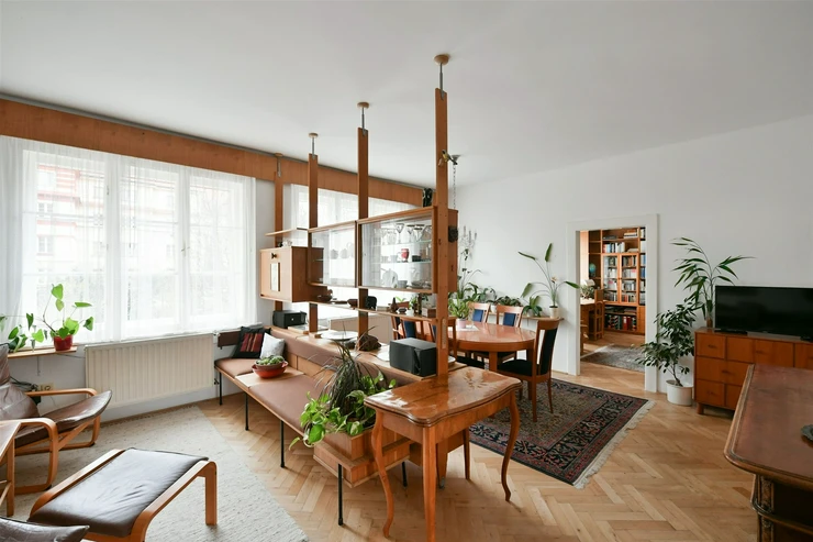 The apartment itself offers an authentic living atmosphere in a villa, combining space, light, and a sense of privacy in one of the most pleasant residential areas of Prague, right next to Cibulka Park.