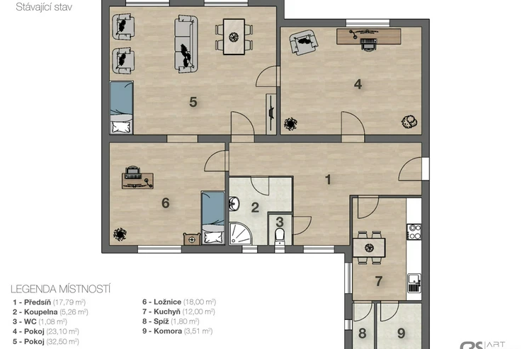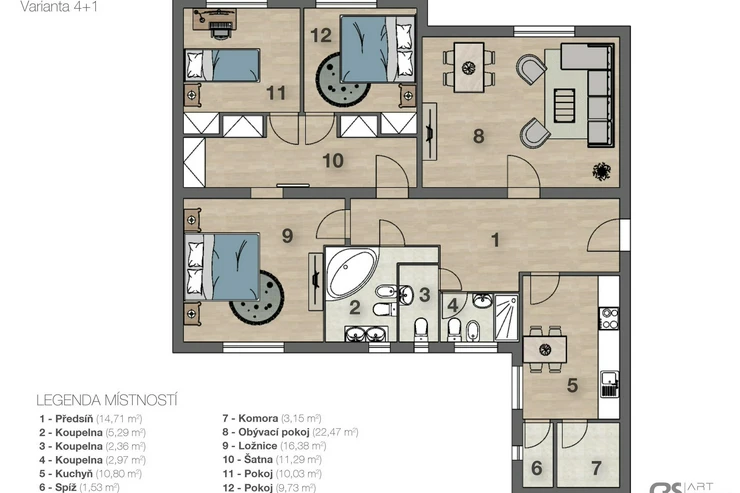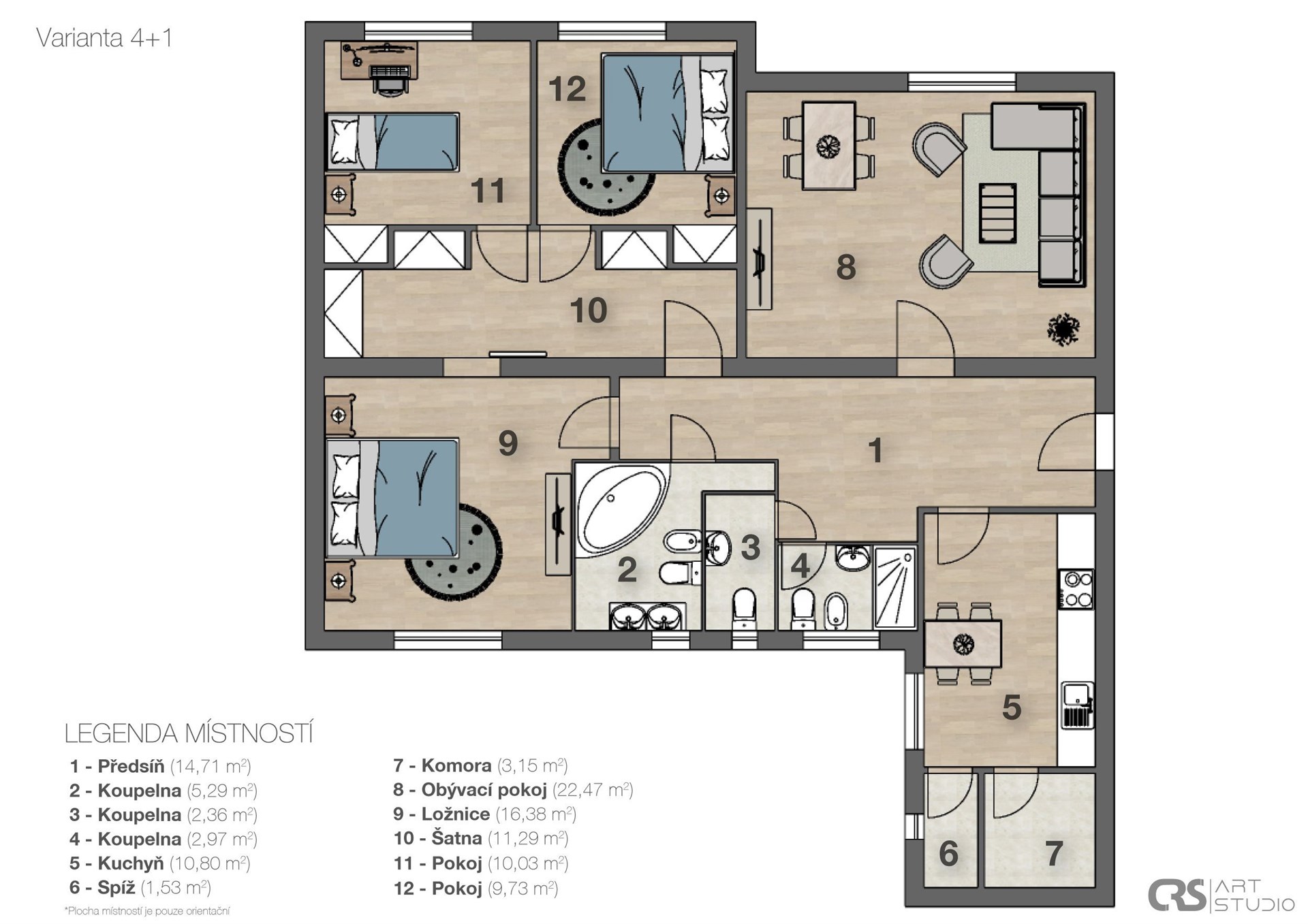 The apartment has been recently occupied and is in very good, well-maintained condition. The interior is currently furnished with wooden furniture in the style of the 70s, as evident from the photographs. The living rooms have preserved parquet floors, hallways are carpeted, while the kitchen and bathroom feature ceramic tiles. An energy performance certificate for the building is not available at the time of the offer’s publication; it is being processed. Similarly, we are working on the solutions for the aforementioned layouts of 4+kk and 4+1, which we will gladly provide.