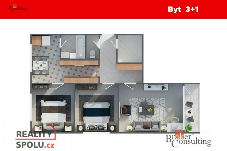 Dispozice bytu nabízí ideální poměr prostoru a praktičnosti:
