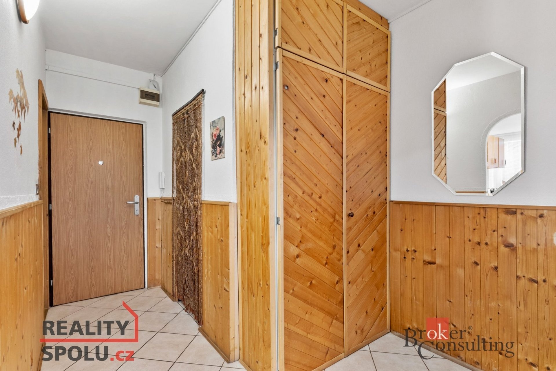 Předsíň s vestavěnou skříní a samostatnou praktickou místností ihned za vchodem.