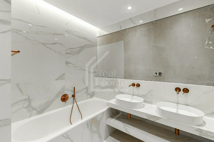 The private section of the apartment includes two separate bedrooms. The master bedroom is designed as a comfortable retreat, with plenty of space for a double bed, wardrobes, and optionally a workspace. The second bedroom is ideal as a children’s room, office, or guest room. Both bedrooms are positioned to ensure maximum privacy and tranquility.