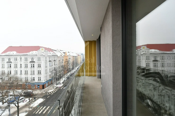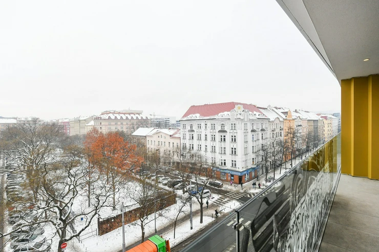 We are offering for sale an exceptional 3-bedroom apartment (3+kk) with a usable area of 100.4 m² and an exceptionally large terrace of 41.9 m², located on the 6th floor of the prestigious Linea Pura residential project in the highly attractive area of Prague 7 – Holešovice.