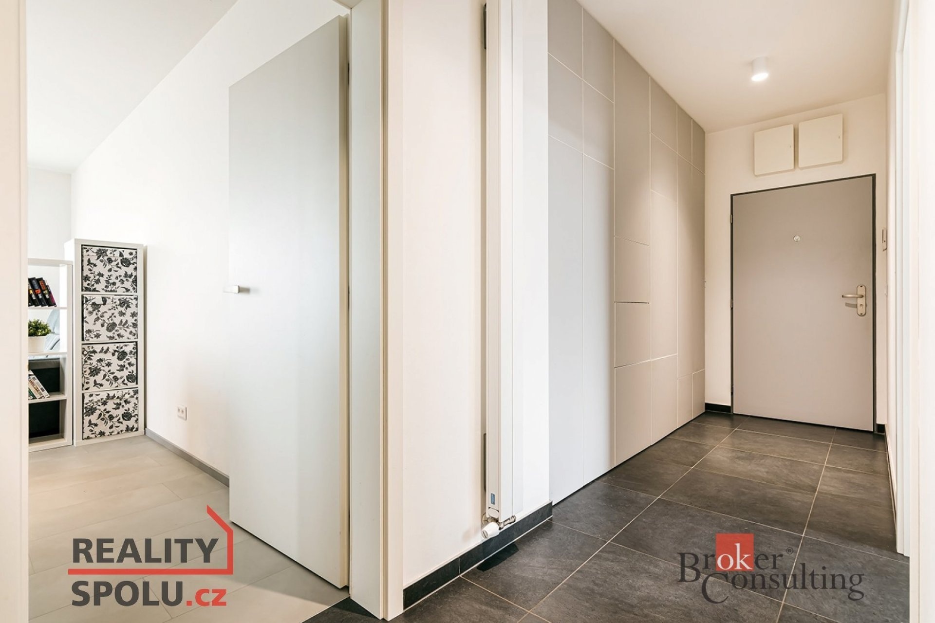 Vestavěná skříň v chodbě poskytuje praktické řešení úložného prostoru.