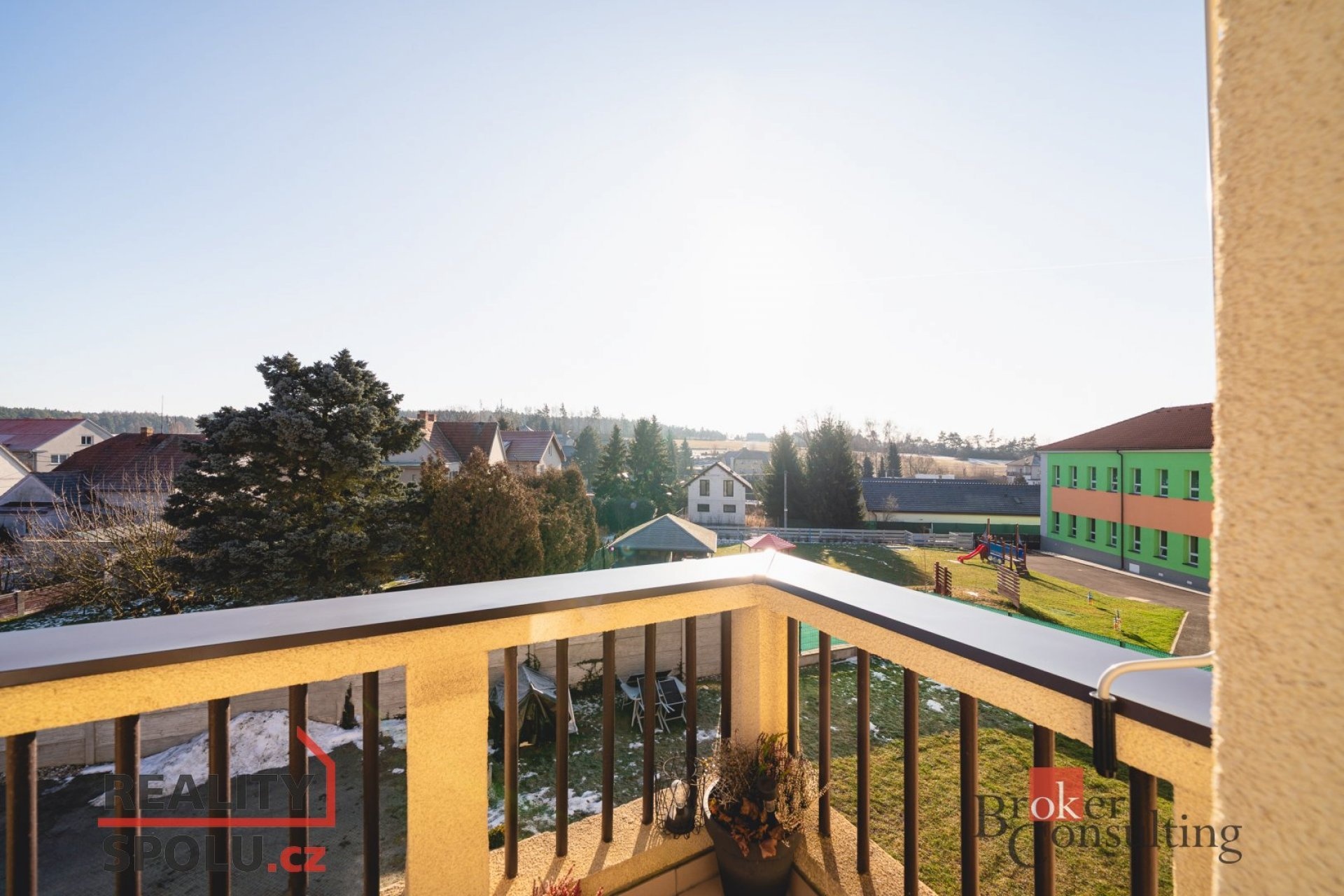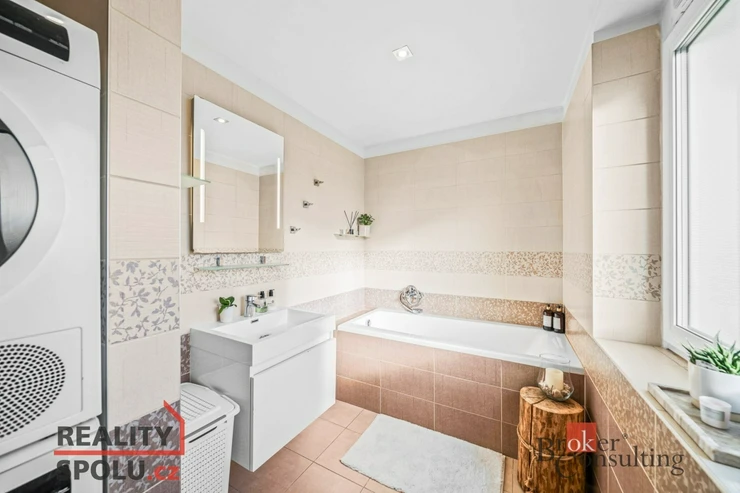 Uzavřený areál s elektrickým vjezdem, 2 vyhrazená parkovací místa přímo u domu, společná zahrada. Malý dům se 4 byty – tento je největší. Samozřejmostí je i sklepní kóje.