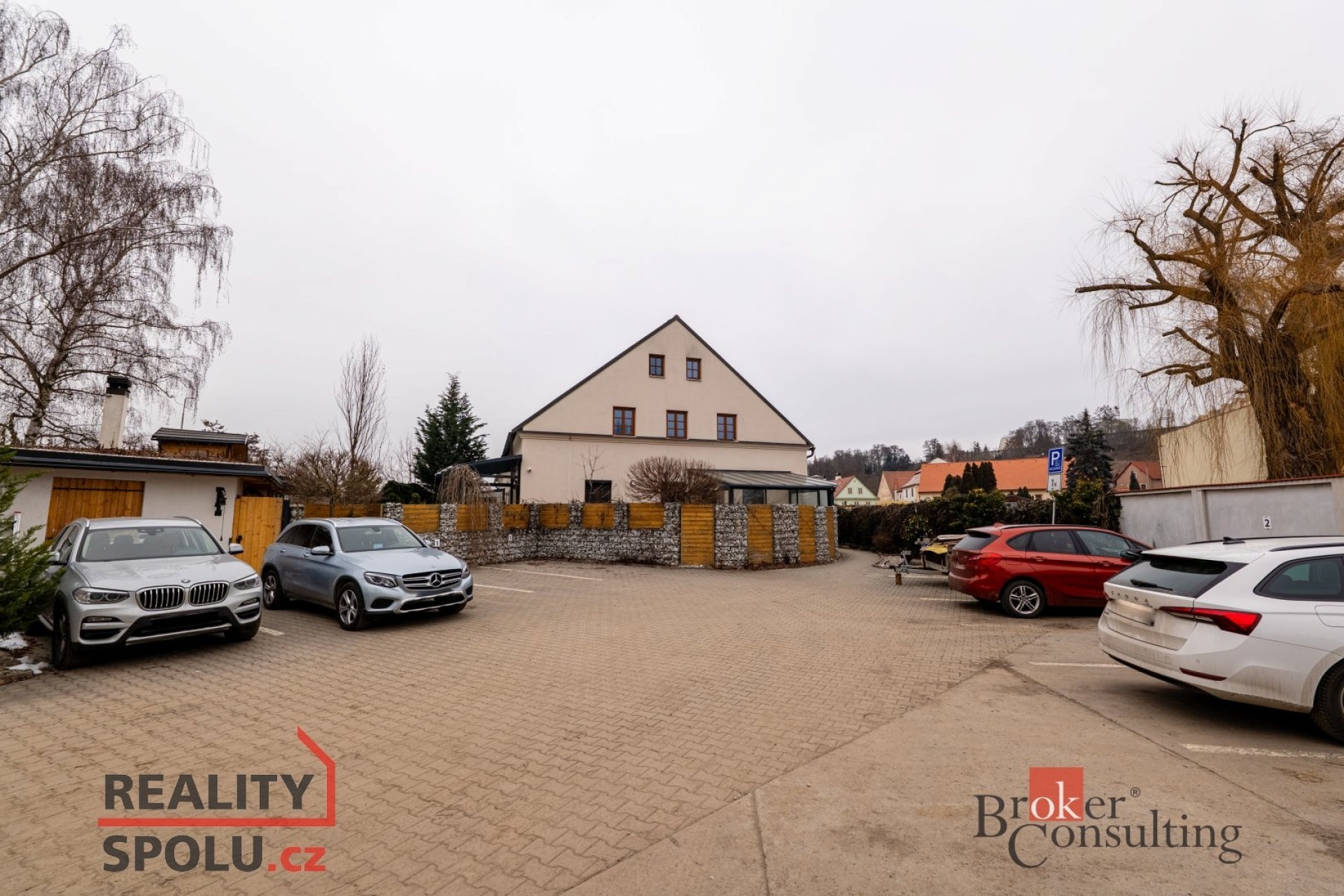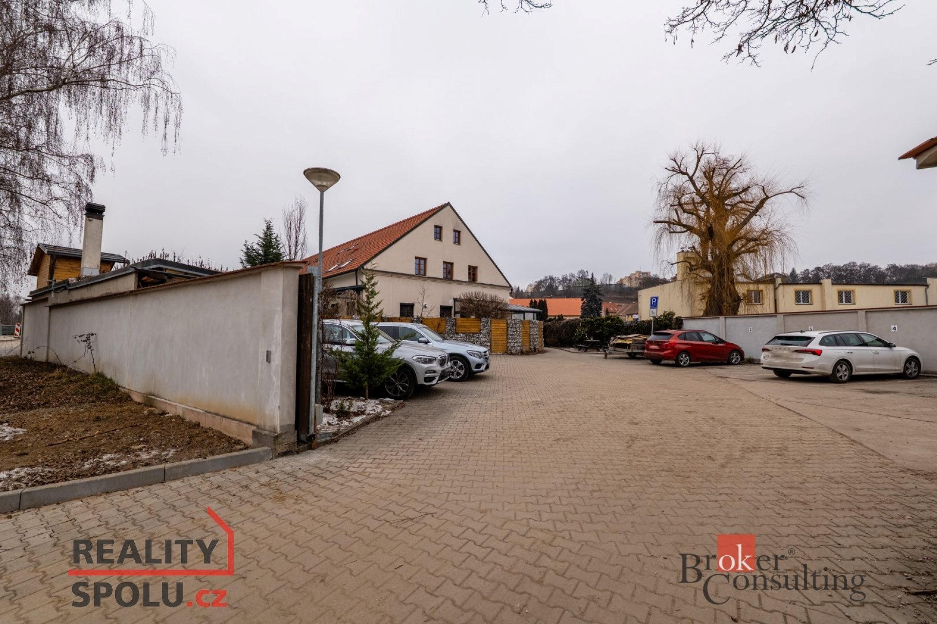 Součástí ceny jsou dvě parkovací stání, umístěná v uzavřeném dvoře, který zajišťuje klidné, bezpečné a velmi soukromé parkování i bydlení.