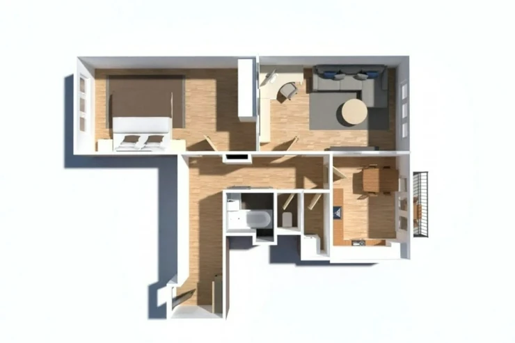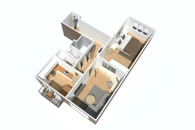 Dispozice 2+1 poskytuje dva plnohodnotné pokoje a samostatnou kuchyni, přičemž celková plocha 67 m² je nadstandardní pro tuto kategorii bytů. Balkon rozšiřuje obytný prostor a nabízí příjemné místo k posezení. Byt je díky své velikosti a řešení vhodný jak pro vlastní bydlení, tak jako obchodní nemovitost k pronájmu.