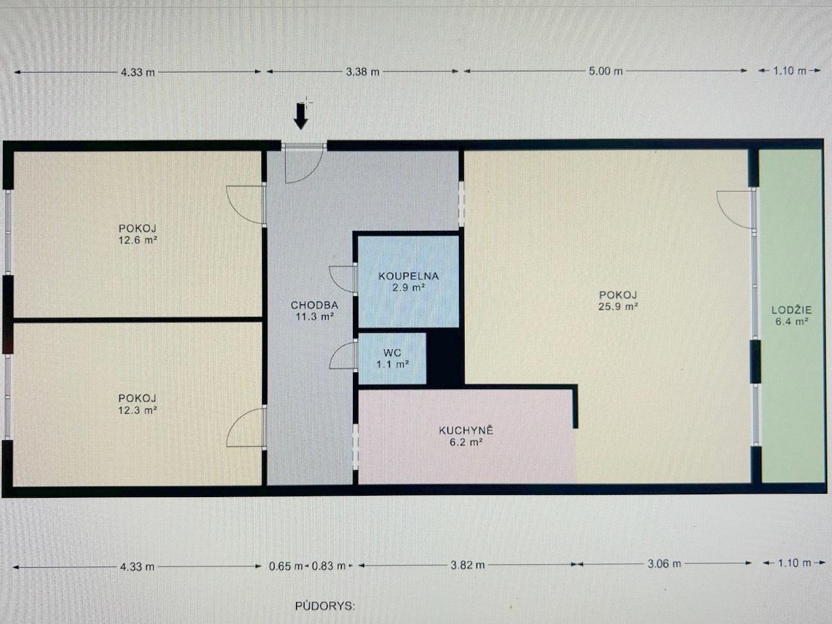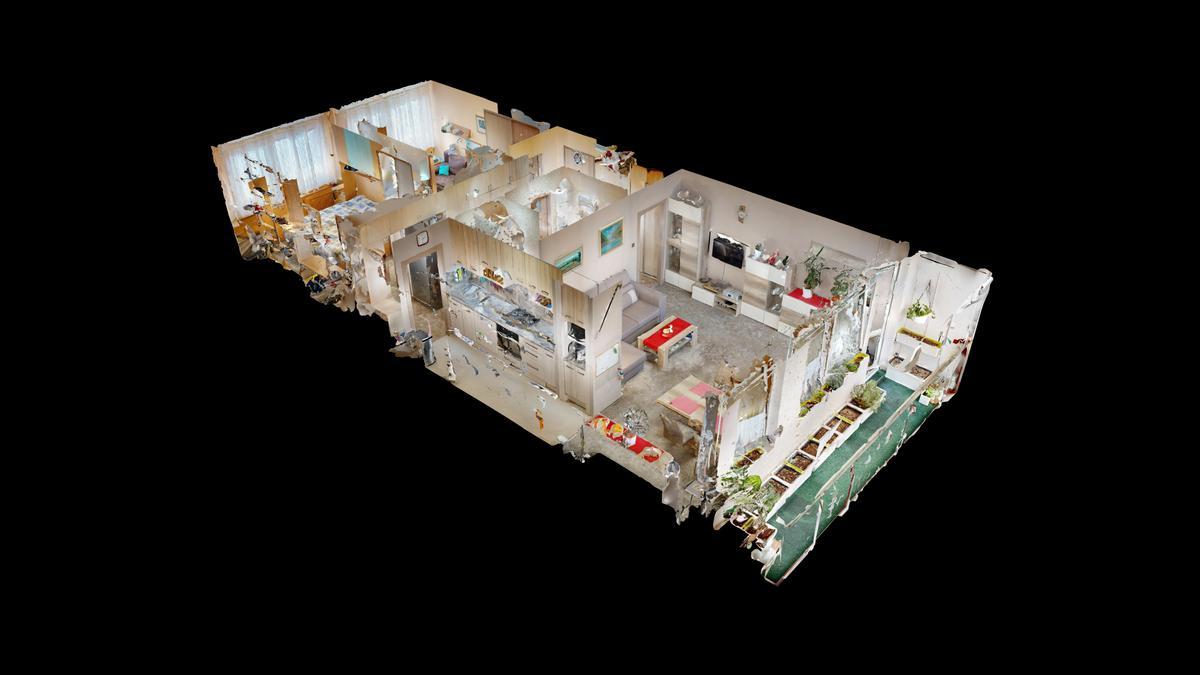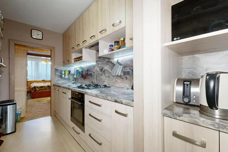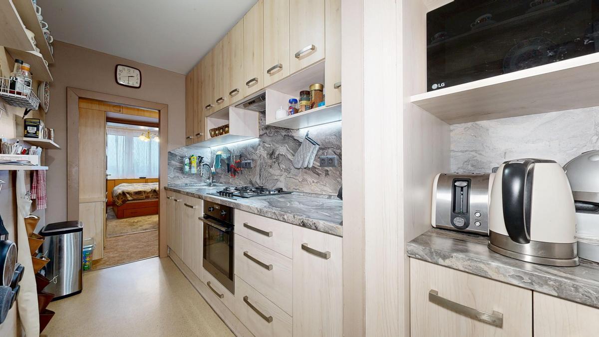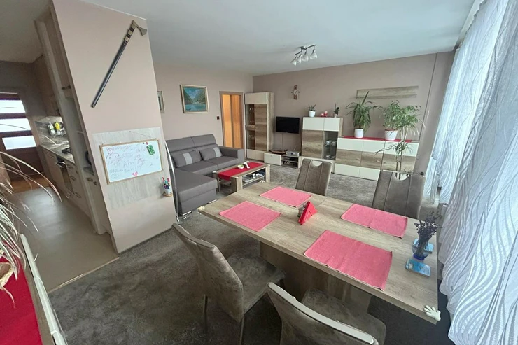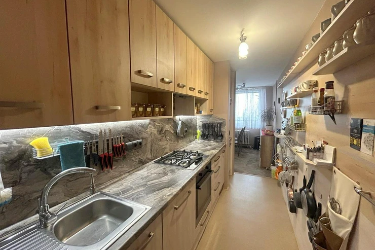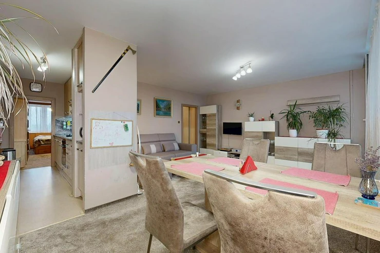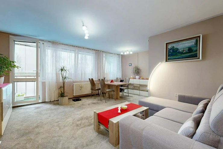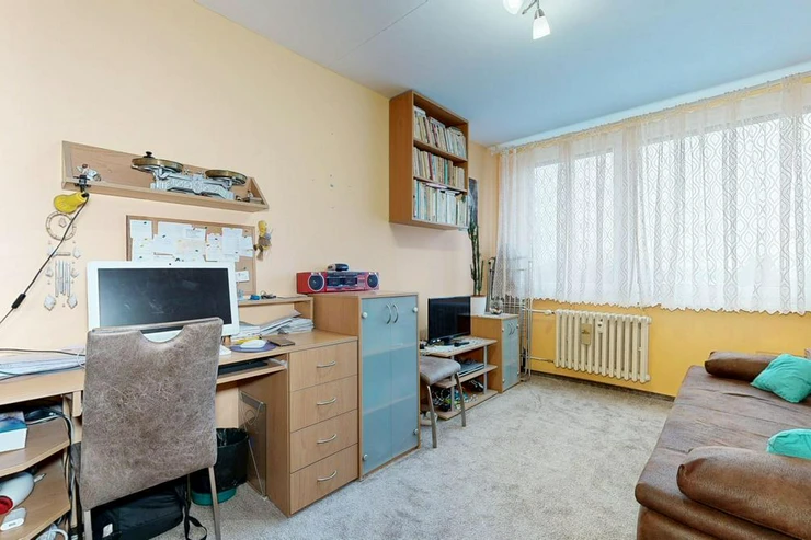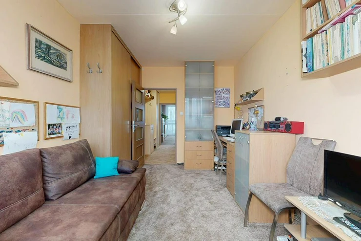 Byt prošel před 5 lety rekonstrukcí a prodává se ve výborném, udržovaném stavu. Dominantní orientací oken je východ (obývací pokoj s lodžií) a západ (dětský pokoj, ložnice). Centrální částí bytu je prostorný obývací pokoj s kuchyňským koutem a přímým vstupem na zasklenou lodžii. Kuchyňská linka je plně vybavena vestavěnými spotřebiči (plynový sporák s horkovzdušnou elektrickou troubou, myčka na nádobí, čistička vody Zepter, mikrovlnná trouba).
