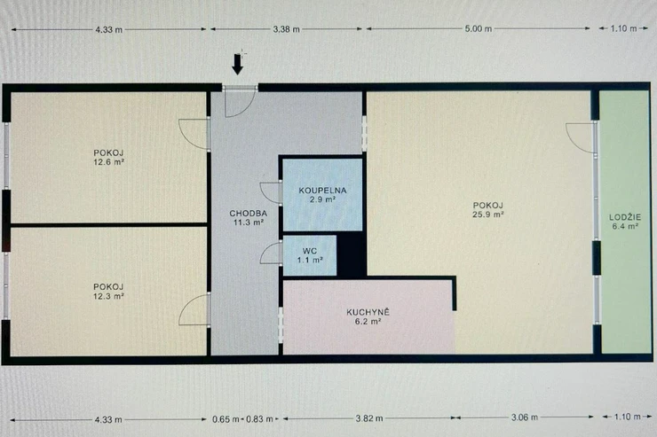 Byt dále nabízí 2 samostatné neprůchozí pokoje, koupelnu se sprchovým koutem, oddělené WC a velkou vstupní chodbu s vestavěnými skříněmi. Součástí bytové jednotky je též komora na patře proti vchodovým dveřím a sklep v suterénu domu.