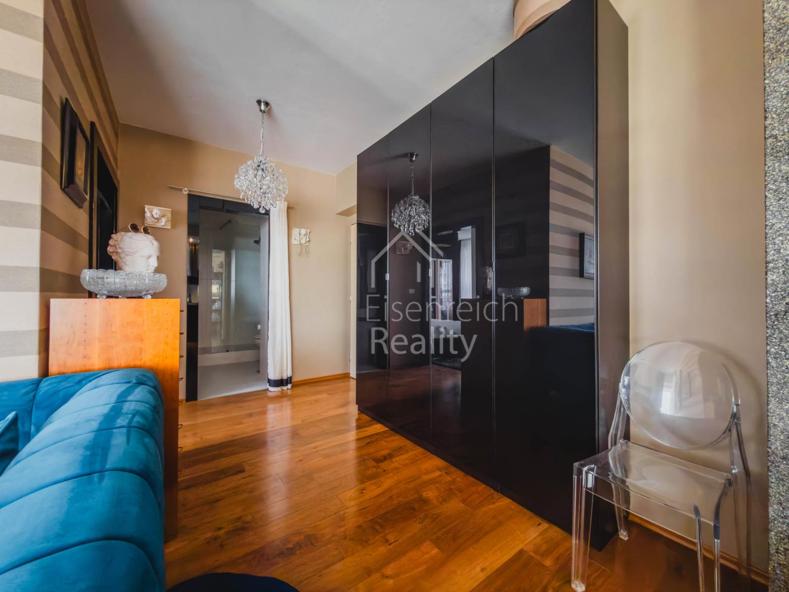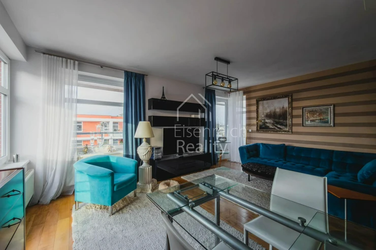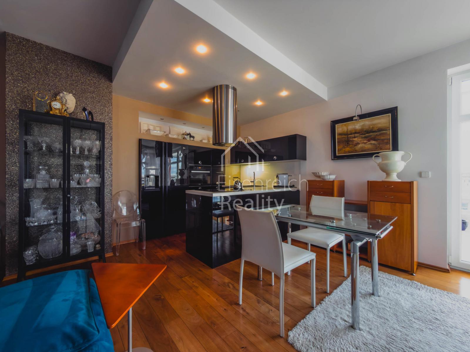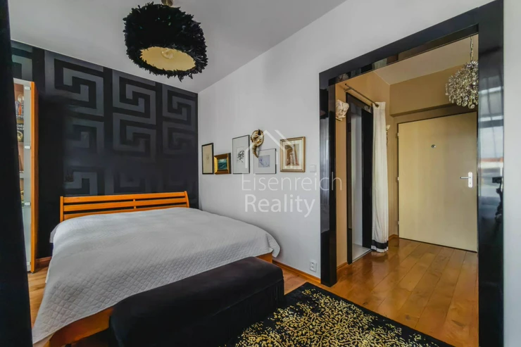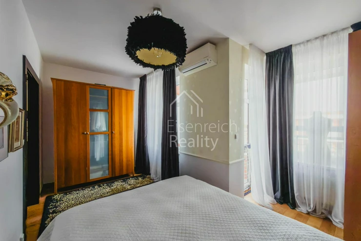Byt prošel rozsáhlou a velmi kvalitní rekonstrukcí s důrazem na detail a použití nadstandardních materiálů. Interiér doplňují dřevěné podlahy, kuchyňská linka na míru včetně vestavěných spotřebičů a moderní koupelna s prostorným sprchovým koutem a designovou sanitou značky Villeroy and Boch. V ložnici je instalována klimatizace, která zajišťuje komfort i v letních měsících.