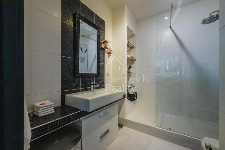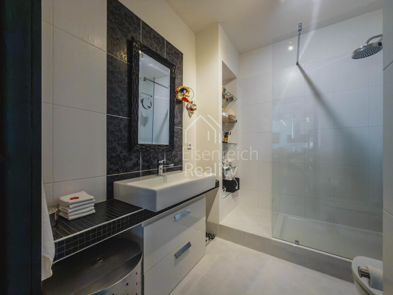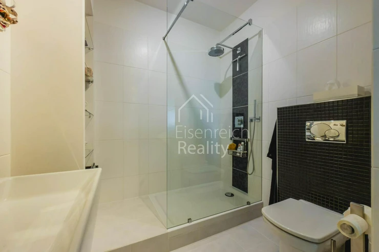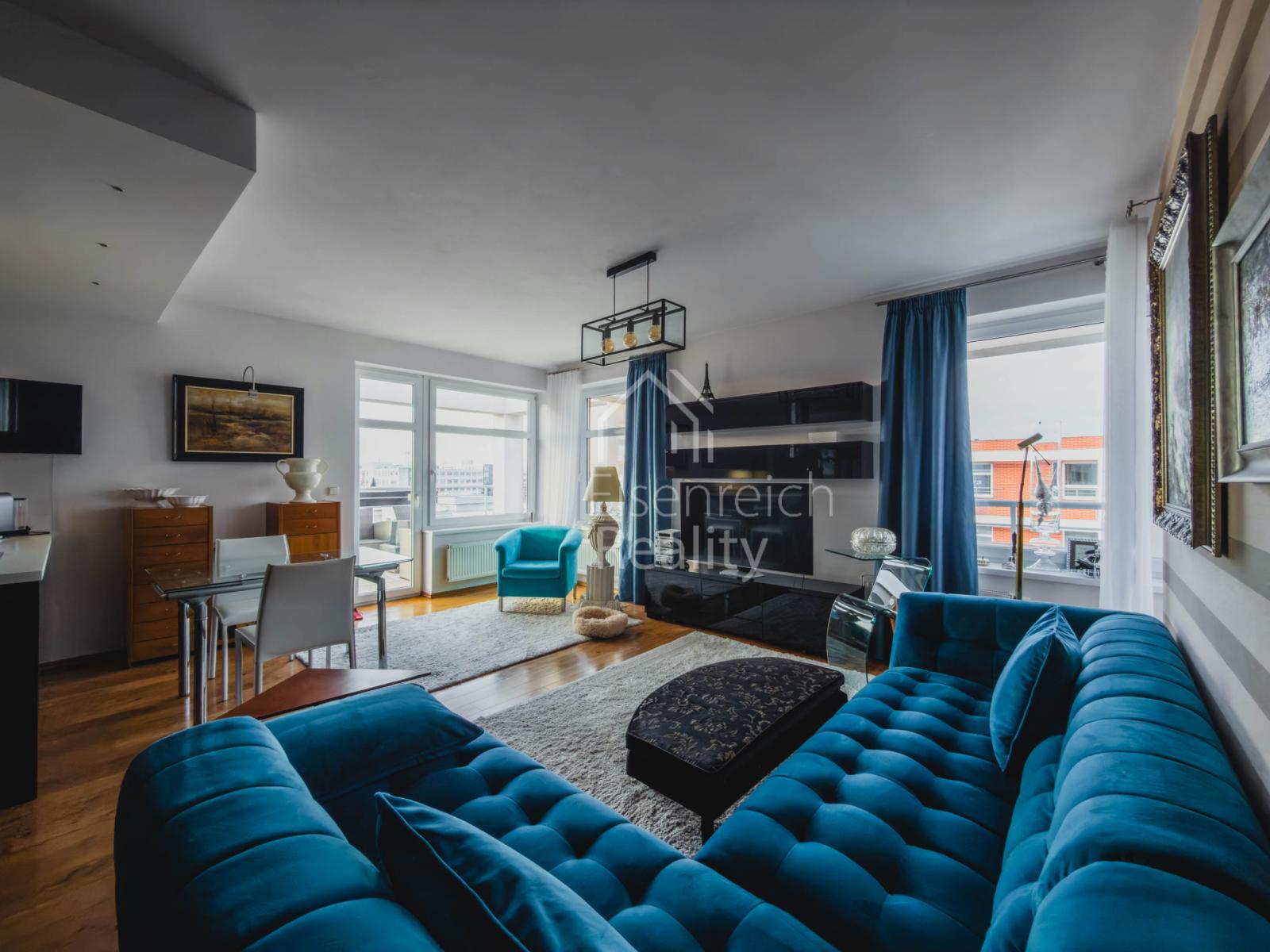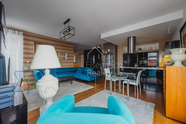 Byt prošel rozsáhlou a velmi kvalitní rekonstrukcí s důrazem na detail a použití nadstandardních materiálů. Interiér doplňují dřevěné podlahy, kuchyňská linka na míru včetně vestavěných spotřebičů a moderní koupelna s prostorným sprchovým koutem a designovou sanitou značky Villeroy and Boch. V ložnici je instalována klimatizace, která zajišťuje komfort i v letních měsících.