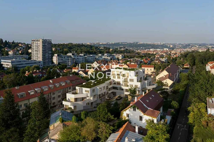 We are offering for sale an exclusive two-bedroom apartment in the modern Rezidence Dejvice project, which combines timeless design, high-quality furnishings, and an exceptional location in one of the most sought-after parts of Prague. The apartment has a usable area of 83.94 sqm and its main feature is a spacious living room with a kitchenette and access to the balcony.The layout of the apartment also offers two quiet and separate rooms and a practical storage room. The entrance hall provides ample storage space, while the modern bathroom with above-standard sanitary facilities and large-format tiles, together with a separate toilet, brings the highest level of comfort to everyday living.The entire apartment is designed with an emphasis on detail and comfort. Aluminum windows with insulated triple glazing are equipped with electrically controlled external blinds, ensuring peace, privacy, and an optimal indoor climate throughout the year. The living areas feature oak parquet flooring, which enhances the elegant and warm atmosphere of the home. Ceiling heating and cooling can be conveniently controlled via a mobile app. Air quality is ensured by centralized heat recovery, which provides fresh air throughout the apartment.Other premium features include bathroom ceramics and fittings from Villeroy & Boch and Hansgrohe and smart home technology, which will allow the future owner to easily install a Smart Home solution according to their own preferences. Units with terraces are already prepared for the installation of outdoor showers and night lighting. The apartment entrance doors meet security class 3, ensuring maximum safety and peace of mind.The apartment comes with a cellar and one garage parking space in the basement of the building. All apartments are designed to provide maximum privacy and contact with the surrounding greenery.Rezidence Dejvice is located at a prestigious address on the border of Orechovka and Dejvice, in the vicinity of embassies, villas, and landscaped parks (Sarka, Hadovka, and Stromovka nature parks). Complete civic amenities are available in the immediate vicinity, including renowned schools, shops, restaurants, and sports facilities. Excellent transport links – the Borislavka metro station is just a few minutes' walk away, and the center of Prague and Vaclav Havel Airport are easily accessible by car and public transport.The project meets the most energy-efficient standards (PENB: A).If you are interested in an appointment or more detailed information, please do not hesitate to contact us.