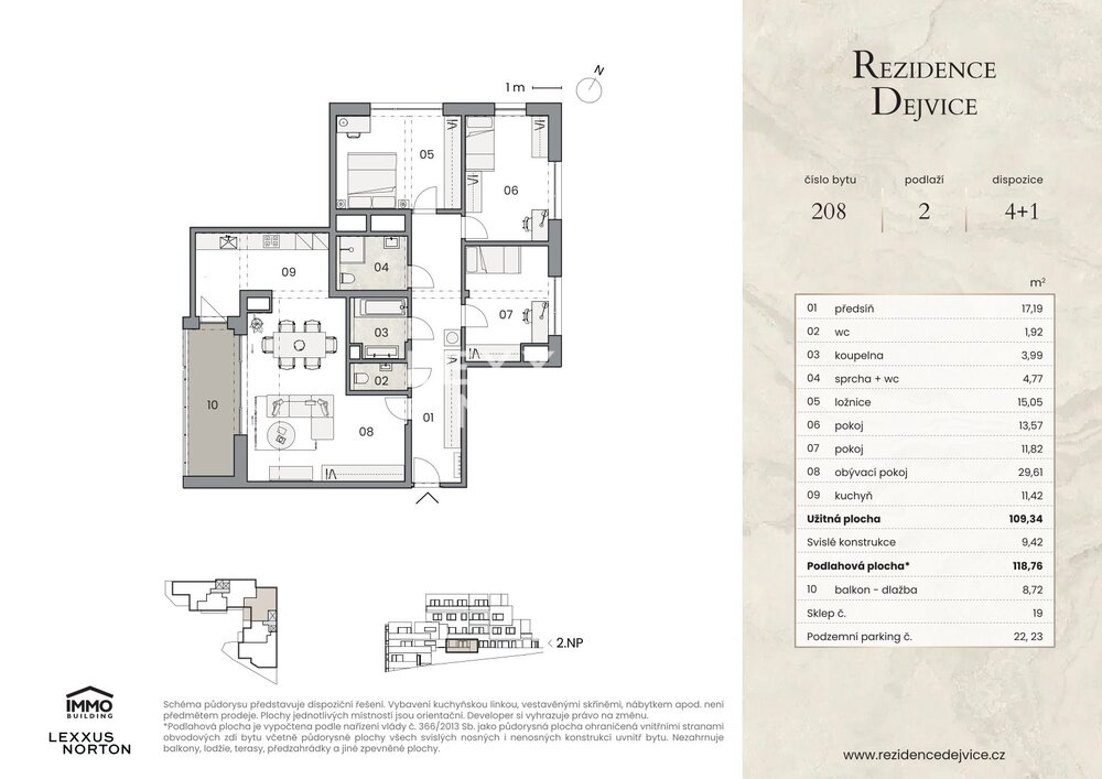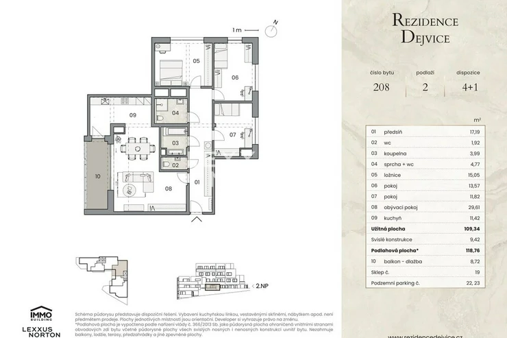 We are offering for sale an exceptional three-bedroom apartment on the second floor of the luxury Rezidence Dejvice project. This above-standard family apartment impresses with its generous floor area of 118.76 sqm and perfect connection between the interior and exterior – the apartment has a spacious balcony, allowing you to fully enjoy the charm of living in green surroundings and complete privacy.The layout of the apartment offers a large living room with direct access to the balcony, three separate bedrooms, and an extra separate kitchen for greater comfort and practicality in everyday life. There are two bathrooms (main and second with toilet), separate toilet, and cloakroom. Thanks to ample storage space and a well-thought-out layout, the apartment is also ideal for a larger family.All spaces are finished to an above-standard quality – aluminum windows with insulated triple glazing and electrically controlled blinds, oak parquet flooring in the living areas, ceiling heating and cooling with mobile app control, and central heat recovery for a healthy indoor environment are all standard features. The bathrooms feature premium sanitary ware and large-format ceramics from Villeroy & Boch and Hansgrohe. The apartment is equipped with smart home technology and allows for individual modifications according to the client's wishes. Selected units also include preparation for a whirlpool, outdoor shower, awning, and night lighting, and the entrance doors meet security class 3.Practical accessories include a basement storage room and two garage parking spaces. Direct access to a balcony facing a quiet courtyard guarantees maximum privacy and comfort.Residence Dejvice is located at a prestigious address on the border of Orechovka and Dejvice, in the vicinity of embassies, villas, and landscaped parks (Sarka, Hadovka, and Stromovka nature parks). The surrounding area offers complete civic amenities, including renowned schools, shops, restaurants, and sports facilities. Excellent transport accessibility – the Borislavka metro station is only a few minutes' walk away, and the center of Prague and Vaclav Havel Airport are quickly accessible by car and public transport.The project meets the most energy-efficient standards (PENB: A).Make an appointment with us and see the unique atmosphere of this apartment for yourself.
