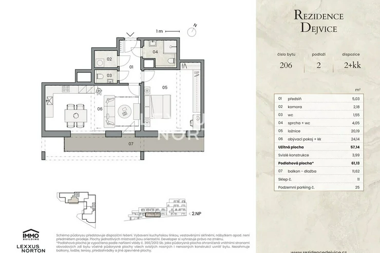 We are offering for sale a unique 1-bedroom apartment with a usable area of 57.14 sqm in a luxury residential project on the border of Orechovka and Stare Dejvice. The apartment includes a spacious balcony measuring 11.62 sqm. This outdoor space provides the ideal setting for relaxation, socializing with friends, and daily contact with nature in complete privacy.The apartment is located on the 2nd floor and stands out not only for its well-thought-out layout, but also for its high standard of finish. The open-plan living room with kitchenette faces a quiet courtyard and seamlessly connects the interior with the exterior, allowing for maximum use of daylight throughout the year. The spacious bedroom offers plenty of storage space. The stylish bathroom with large-format tiles and high-quality sanitary ware is complemented by a separate toilet for maximum comfort.All of the apartment's furnishings meet premium standards. Aluminum windows with triple glazing are equipped with electrically controlled external blinds, ensuring perfect silence, privacy, and thermal comfort in every season. The living areas feature oak parquet flooring, which brings elegance and coziness to the space. The air in the apartment is taken care of by a central recuperation system with an air purifier. Ceiling heating and cooling can be controlled via a mobile app, allowing you to fully customize the temperature to your current needs. The apartment is also equipped with smart home technology. The bathroom is equipped with Villeroy & Boch and Hansgrohe sanitary ware, which guarantees high comfort and long life. The owner of the apartment will also appreciate the preparation for the installation of a sauna and evening lighting.The entrance door to the apartment meets security class 3. The apartment comes with a spacious cellar and a garage parking space in the basement of the building, which significantly increases everyday comfort.Residence Dejvice is located at a prestigious address on the border of Orechovka and Dejvice, in the vicinity of embassies, villas, and landscaped parks (Sarka, Hadovka, and Stromovka nature parks). Complete civic amenities are available in the immediate vicinity, including renowned schools, shops, restaurants, and sports facilities. Excellent transport links – the Borislavka metro station is just a few minutes' walk away, and the center of Prague and Vaclav Havel Airport are easily accessible by car and public transport.The project meets the most energy-efficient standards (PENB: A).If you are interested in an appointment or more detailed information, please do not hesitate to contact us.