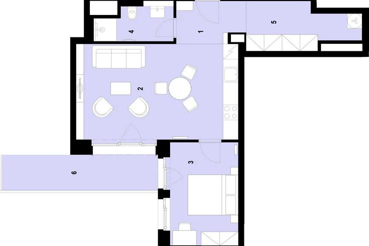 Unit no. 1201 with a one-bedroom layout and a total area of _63.2 m² on the 2nd floor will offer you a harmonious space for living, whether you are looking for your own apartment or are a couple starting a joint chapter. The airy living room with a kitchenette freely flows into the bedroom, which is complemented by an elegant bathroom with a shower and toilet. The unit includes a balcony, perfect for enjoying your morning cup of coffee in the fresh air. A cellar and a parking space must be purchased for each unit.