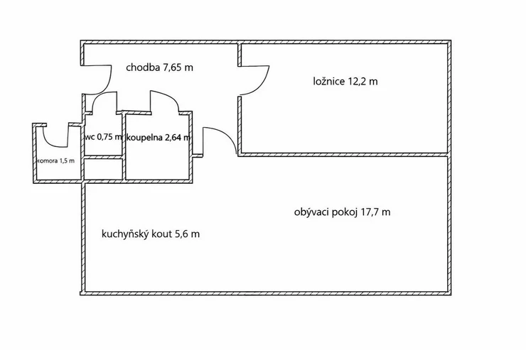 The apartment is located on the 1st floor of a panel building and is intended for renovation according to the new owner's own ideas. The layout includes a living room, bedroom, kitchenette, and bathroom with toilet. The apartment has a practical storage room in the hallway, located close to the apartment's entrance door. Both the bedroom and living room face northwest.
