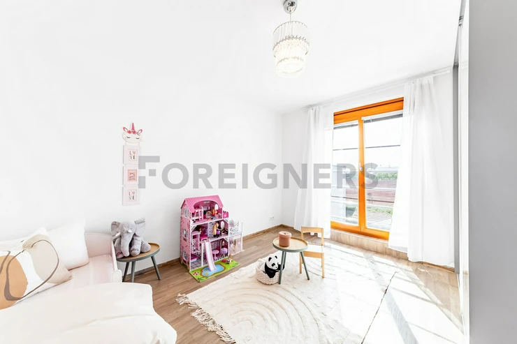 The Chrlice area is ideal for families with children. Everything you need is nearby – schools, kindergartens, medical centers, shops, and restaurants. Biotop Chrlice, NC Olympia, and cycling paths are all within a 5-minute reach. The trip to the center of Brno takes 20 minutes by bus or 15 minutes by car. A night bus service is also available.