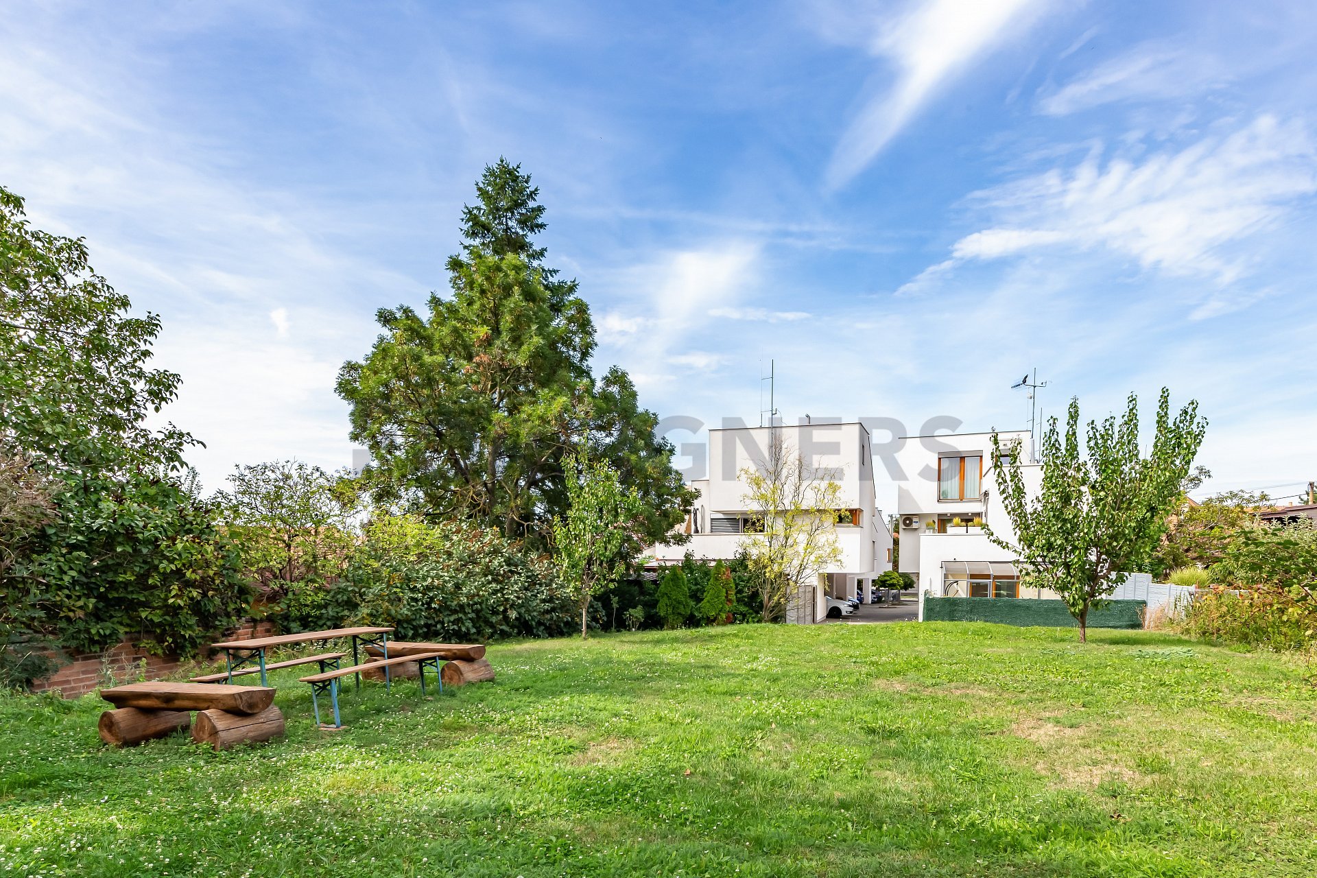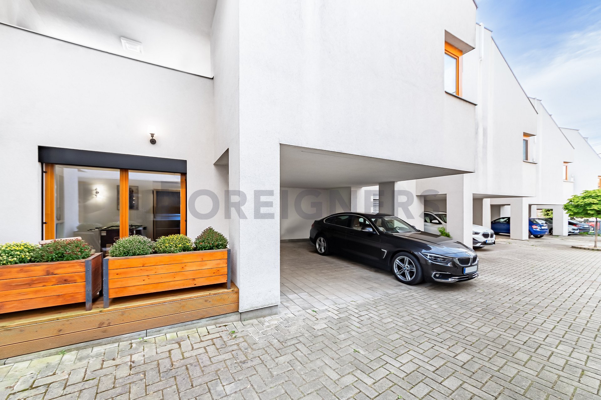 This house offers a total of three terraces, a storage room, and two covered parking spaces in front of the house. The entire project is fenced and includes a shared garden. Maintenance costs are divided among all members of the homeowners’ association (SVJ).