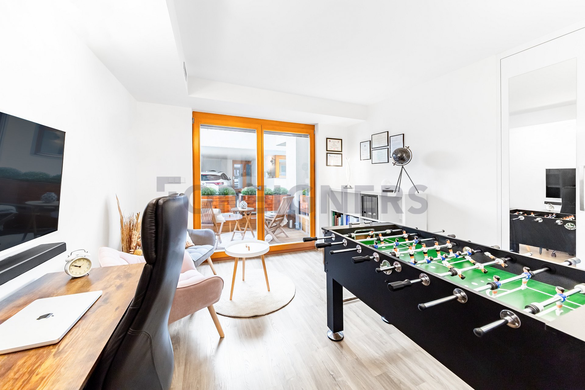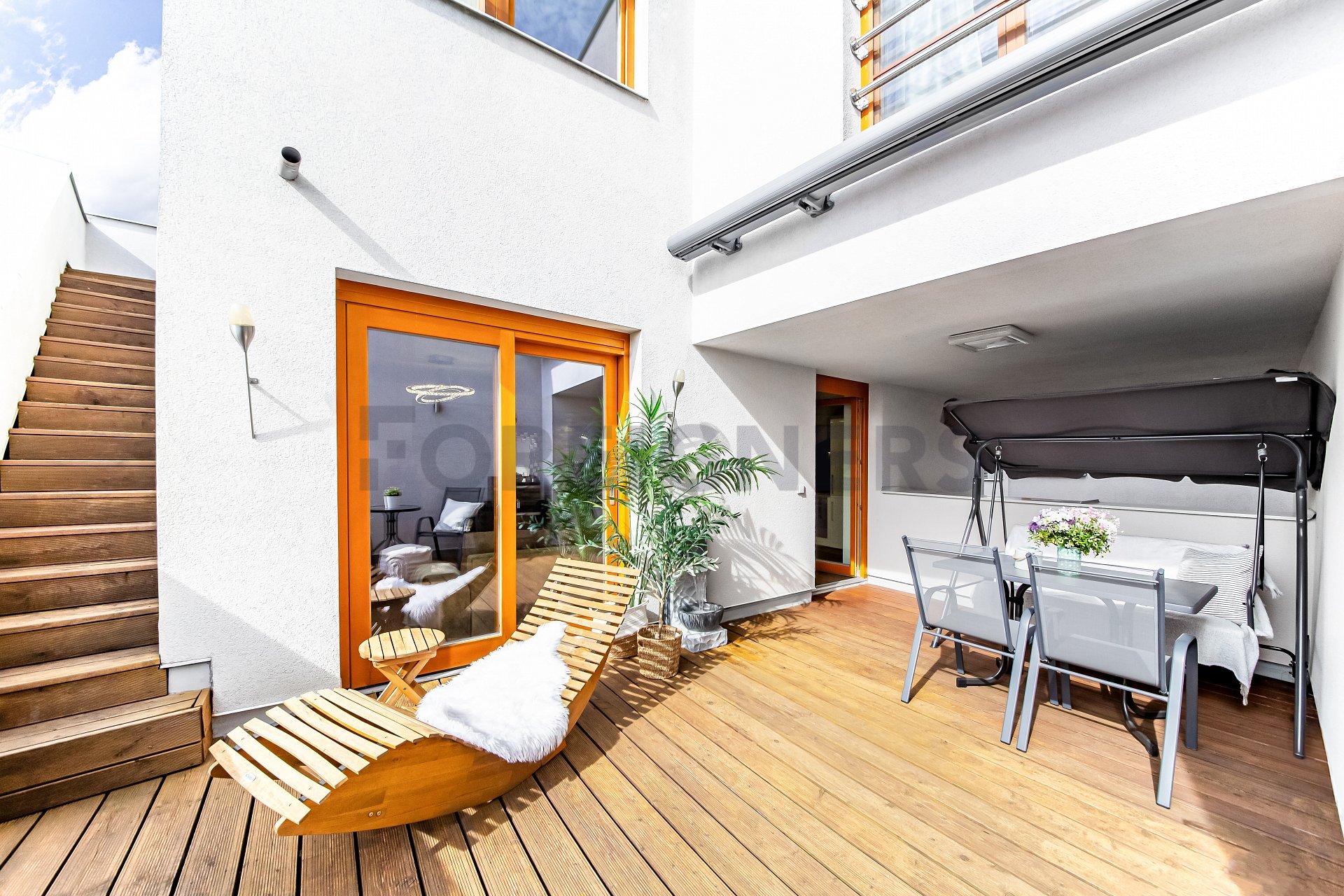 We are offering a unique apartment with a layout of 4+kk and a total area of 176.7 m², including parking and a 1/9 co-ownership share of a 771 m² plot. This apartment, whose architecture meets international standards, is an ideal choice for those seeking high-quality and comfortable living.