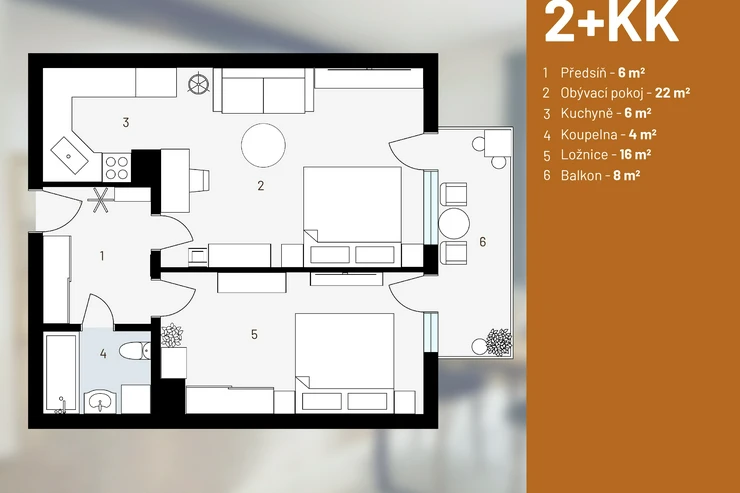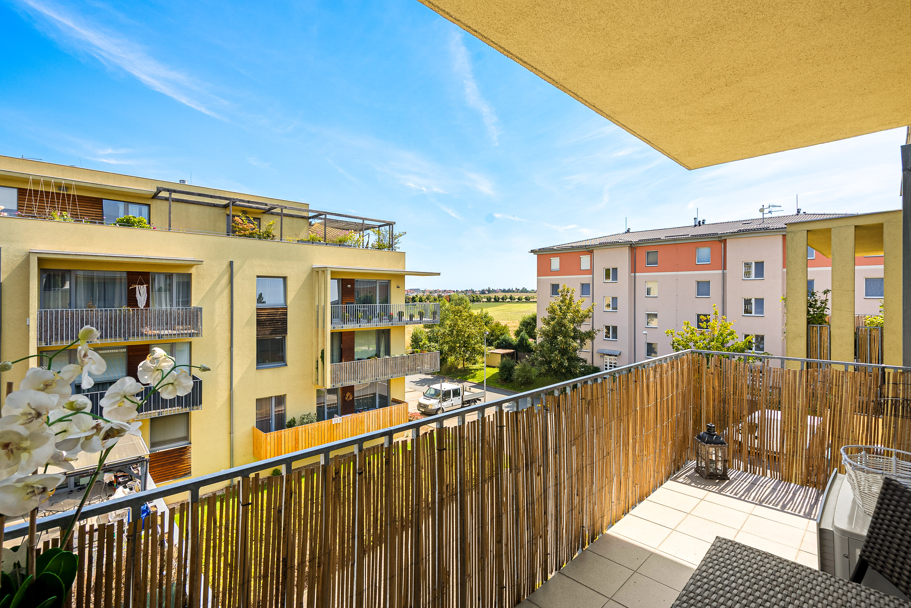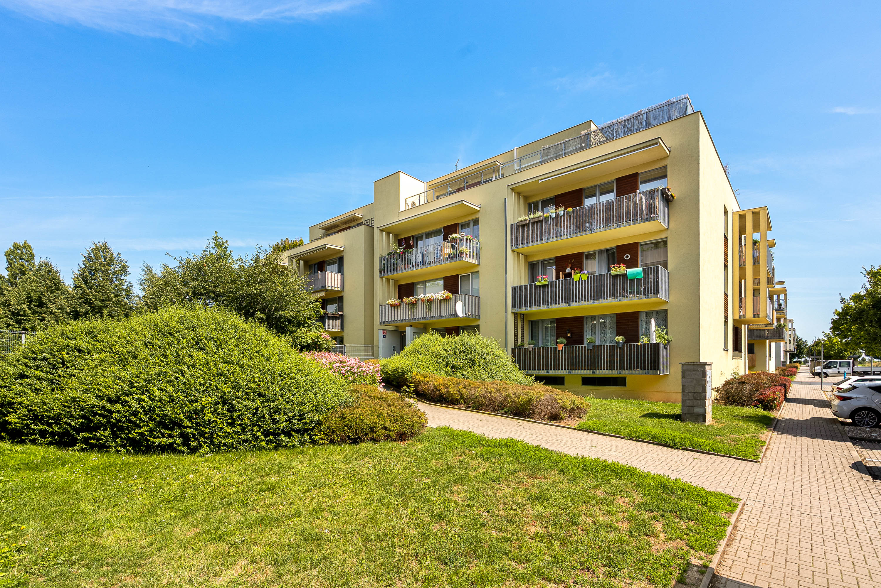 Sale of 2+kk apartment, Rýnská Street, Prague 9. We offer for sale a beautiful, sunny 2+kk apartment measuring 54 m² with an 8 m² balcony and cellar, located in a modern residential building in the popular area of Prague 9 - Čakovice.