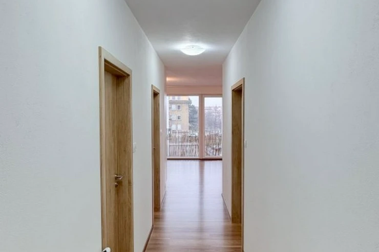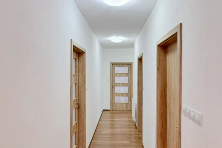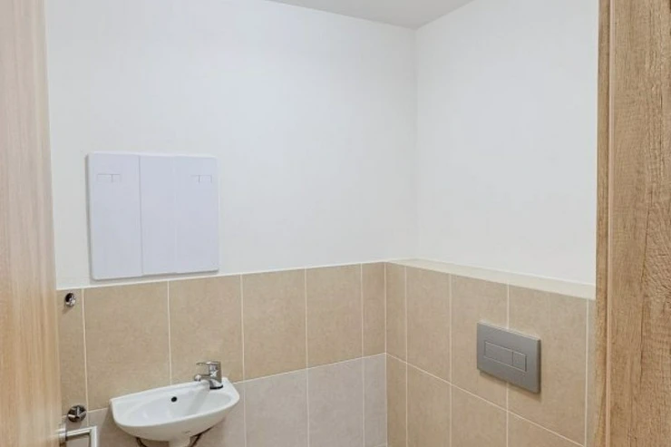 Dispozice bytu je velmi funkční – dvě samostatné ložnice zajišťují dostatek soukromí, koupelna je vybavena vanou a toaleta je řešena samostatně, což zvyšuje každodenní komfort bydlení.
